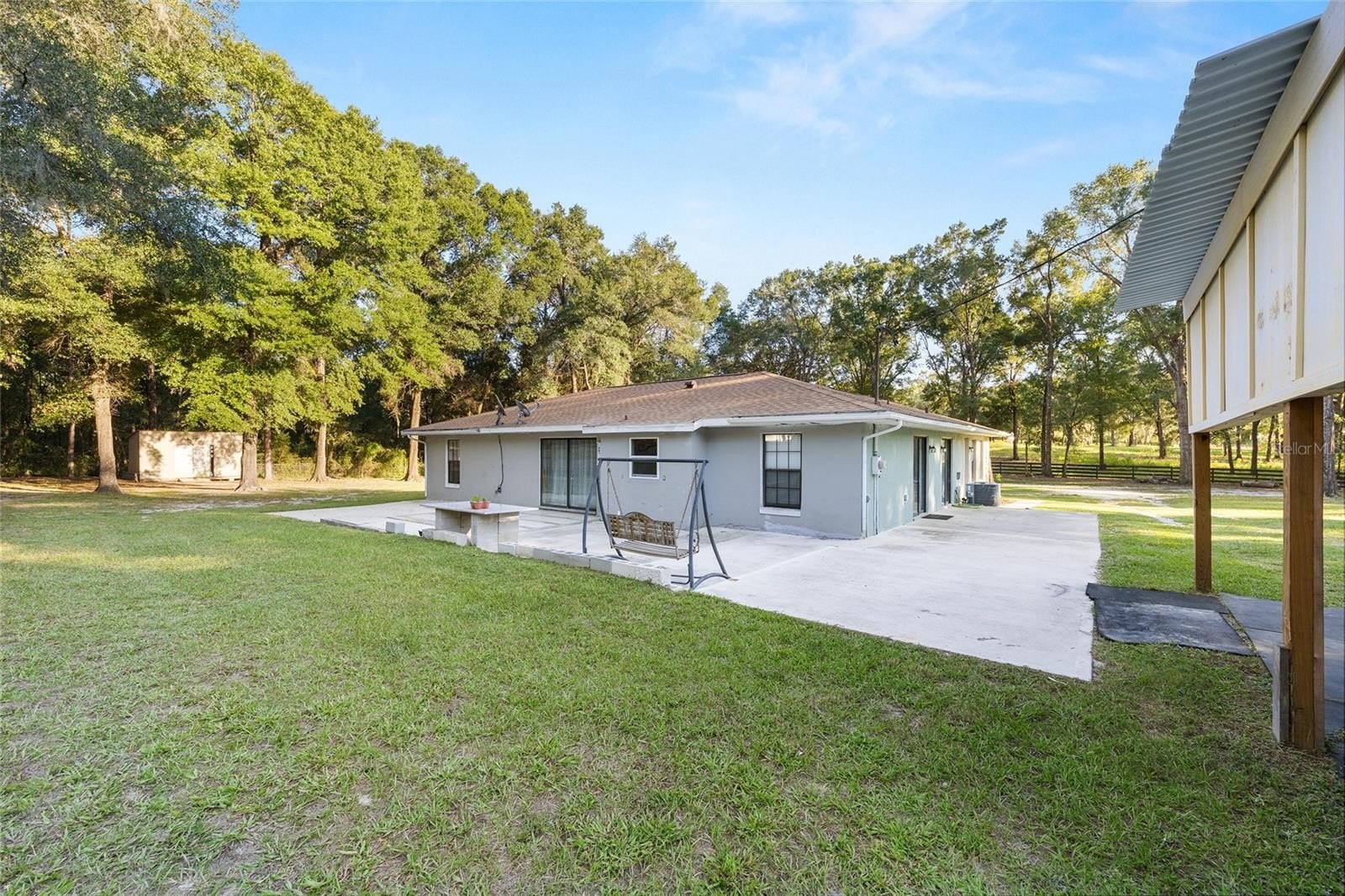 Welcome to your private, peaceful country retreat! This 4-bedroom, 3-bath home offers 2,003 sq ft of living space with a newer roof, A/C, and water heater (al 2020) for peace of mind. Inside, the master and kitchen feature tile flooring, while the other two bedrooms have laminate floors. Ceiling fans are found throughout, adding comfort and efficiency. Enjoy a fully self-contained in-law suite with its own private entrance, central air, and tile flooring throughout—perfect for guests or extended family. The property also includes three outdoor buildings and a shed, ideal for hobbies, storage, or workshops. Sitting on A1-zoned land, this property offers rare flexibility and endless possibilities. Just minutes from Ocala shopping, Dunnellon’s Rainbow River State Parks, riverfront dining, walking & biking trails. Zoned for great schools, this home combines comfort, privacy, and convenience. Don’t miss your chance to own a piece of Rolling Hills—schedule your showing today!