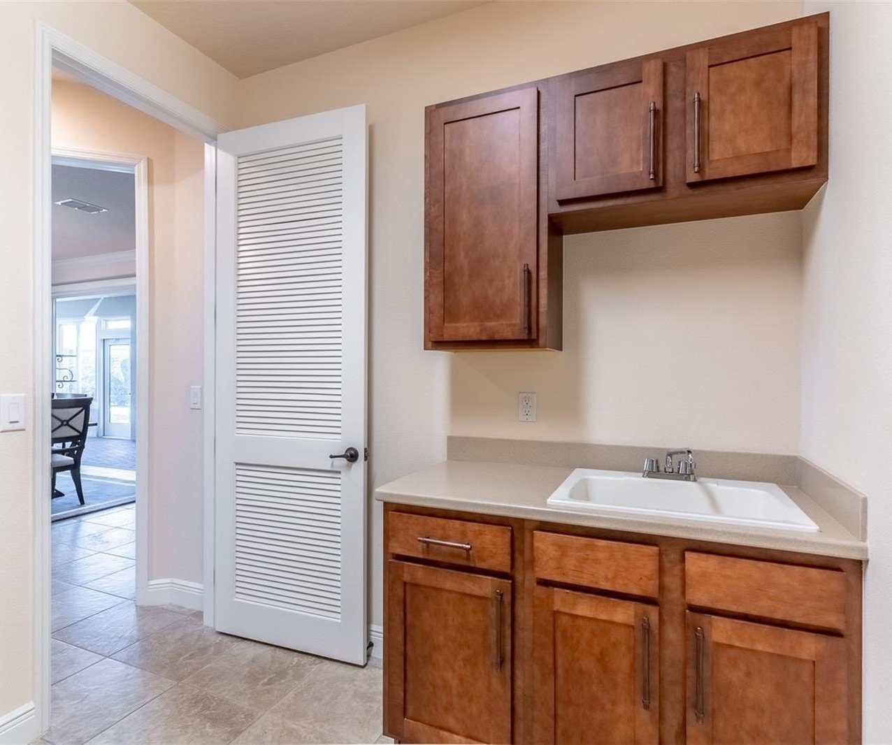 This is the perfect Florida home with a split bedroom floorplan, for privacy for your out of town guests, 3-bedrooms, 3 full baths, extended 3.5 car garage with golf cart/workshop space, tile, wood laminate and brick paver floors, no carpet, a generator, you know just in case, a large indoor under a/c laundry room with utility sink and a owners landing station with custom cabinets right off the garage.