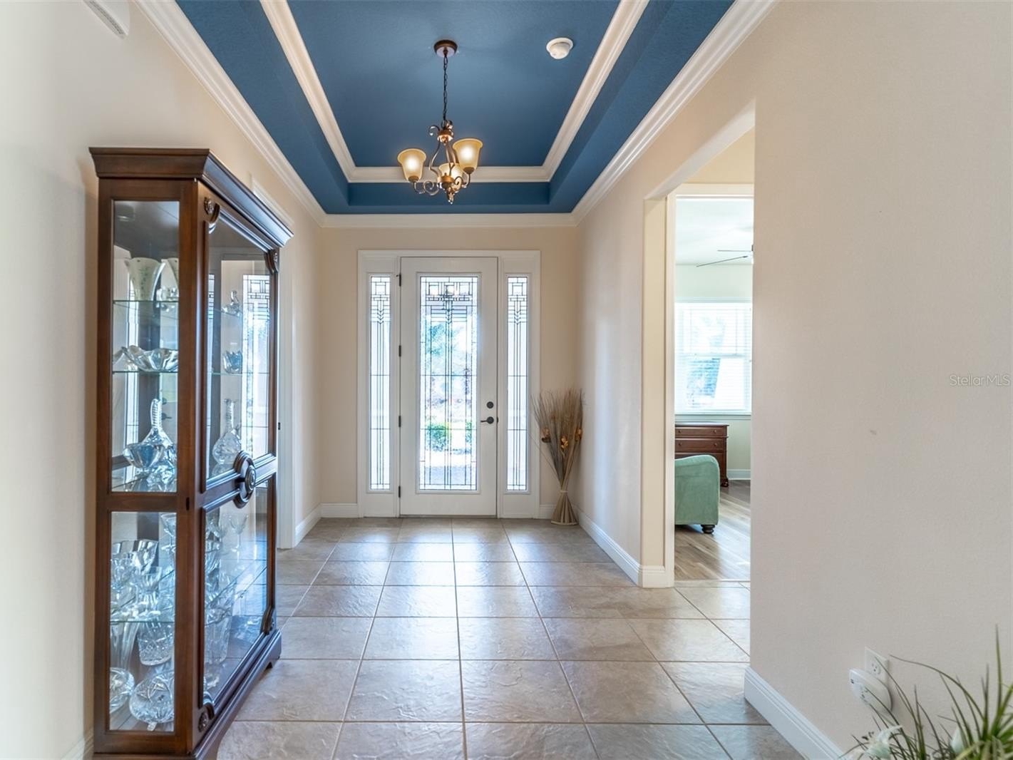 Your stunning Argyll - Arlington model home has amazing curb appeal with a brick paver driveway and sidewalk leading to the welcoming, large covered front porch entrance with a leaded glass front door with sidelights. The foyer has a tray ceiling creating a grand entrance to the beautifully designed open concept, great room and gourmet kitchen.