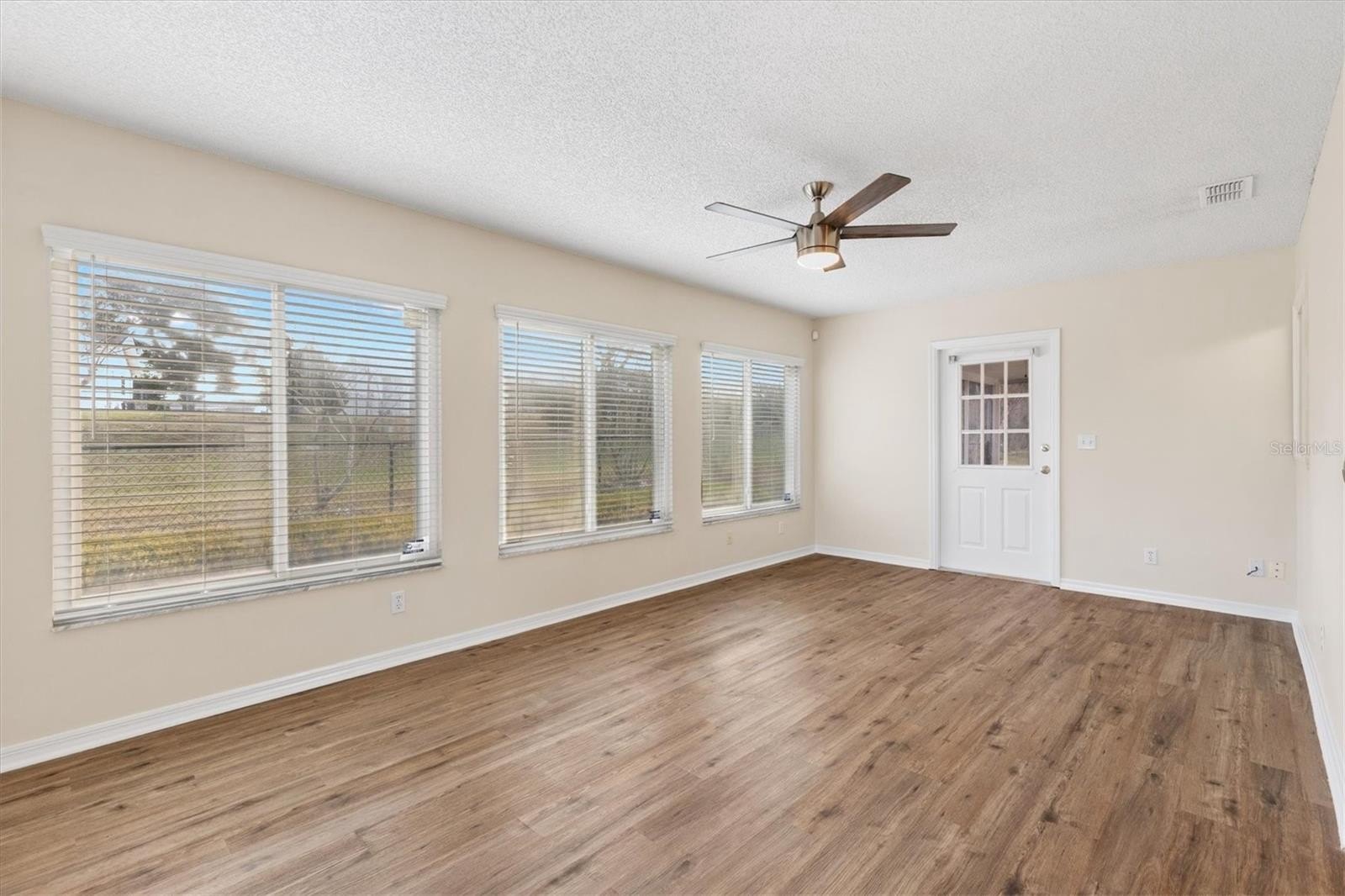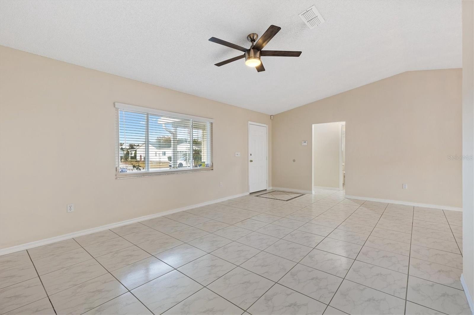 Welcome to a lifestyle where every day feels like a Saturday in the Beautiful 55+ Gated Golf Community of SPRUCE CREEK SOUTH, located adjacent to THE VILLAGES, FLORIDA. This charming 3 Bedroom, 2 Bath home offers the perfect blend of comfort, convenience, and carefree living, making it an ideal place to enjoy your retirement years to the fullest. Step inside to find soaring high ceilings and fresh interior paint completed in November 2025, creating a bright and welcoming atmosphere. The home features TILE flooring throughout the main living areas with LAMINATE flooring in the bedrooms and Florida room. Modern STAINLESS STEEL appliances add a touch of elegance to the thoughtfully designed kitchen. Practical updates include SOLAR PANELS installed in 2021 to help reduce your utility costs, 2010 ROOF and WINDOWS Replaced 2012. The partially FENCED BACKYARD is perfect for those with a beloved pet, offering peace of mind and room to enjoy the outdoors. Living here means embracing the freedom and fun of a golf cart lifestyle, with convenient access to shopping, dining, and countless local amenities, all just a short ride away. Spruce Creek South offers a warm, welcoming environment with an abundance of clubs, activities, and opportunities to connect with neighbors who soon feel like family. This home is attractively priced and ready for you to start living your best retirement life. Welcome home to Spruce Creek South where relaxation, recreation, and community come together beautifully.