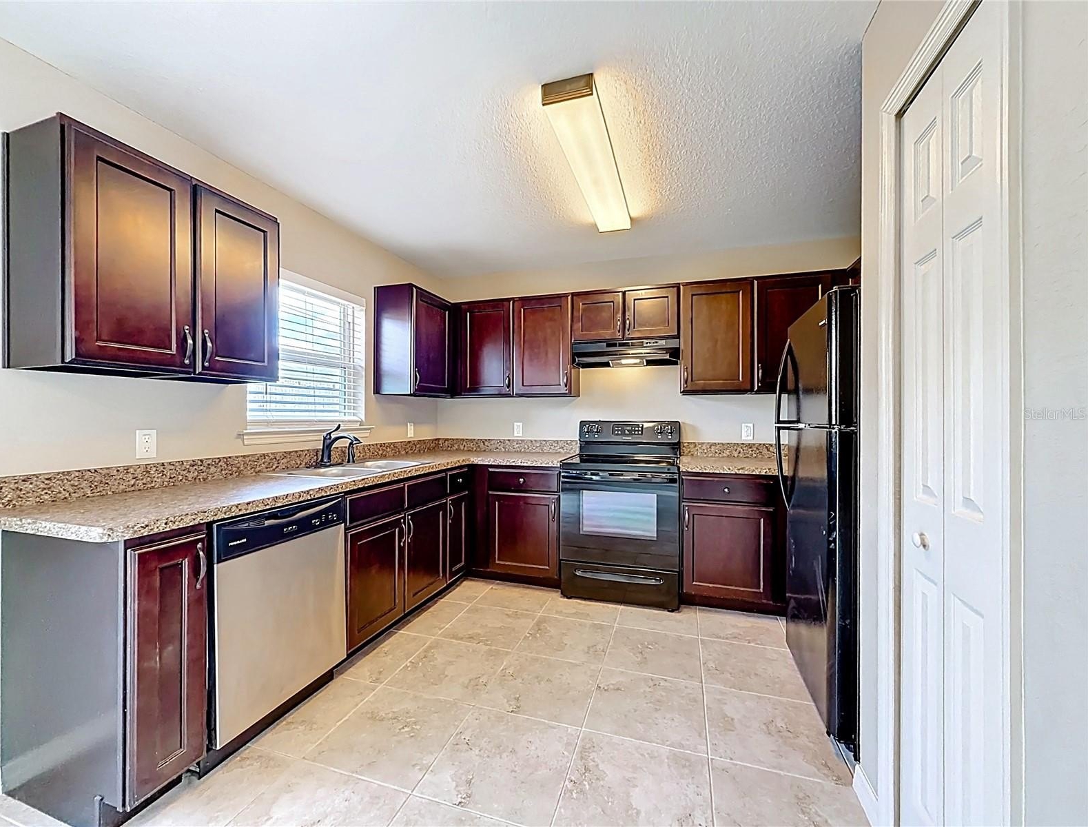 Immaculate, Like-New 3 Bedroom Block Home on Nearly a Quarter Acre! Welcome to this beautifully maintained 3-bedroom, 2-bath block home featuring a desirable split bedroom floor plan and a freshly updated interior. Step inside to find brand-new carpet, fresh paint, and a bright, inviting layout enhanced by high-efficiency windows throughout. The heart of the home is a gorgeous kitchen complete with beautiful cabinetry, a range with hood, dishwasher, and refrigerator. The adjoining living spaces offer both comfort and style with a mix of tile and carpet flooring. The spacious primary bedroom features a walk-in closet and a private ensuite bathroom, creating a peaceful retreat. Two additional bedrooms share a well-appointed second bath. Outside, enjoy the freedom of no HOA and the generous nearly quarter-acre yard, perfect for outdoor living, gardening, pets, or future enhancements. The home also includes an attached 2-car garage with an epoxy-coated floor, providing durability and a clean, polished look. This home is immaculate, truly well-maintained, and move-in ready—offering the feel of new construction without the wait. ***Some pictures are virtually staged.***