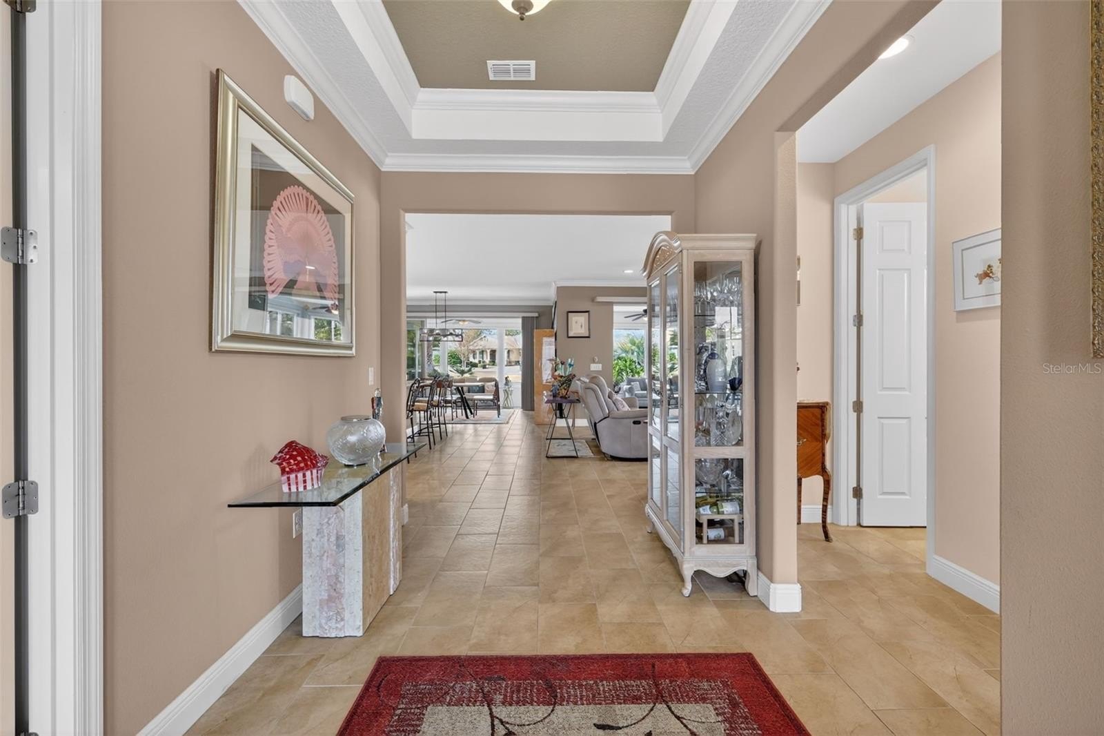 Beautiful Argyll (Arlington) model home located in the Stonebridge section of Candler Hills West in On Top of the World! This home is on a spacious corner lot with a glass enclosed lanai (2022) that provides over 400 square feet of extra living space and year-round enjoyment. The lanai has waterproof flooring with luxury vinyl, multiple electrical outlets, fresh paint, extra insulation in the ceiling and sun blocking electric shades on all windows. The lanai overlooks a large paver patio and a spacious backyard with mature palms and tropical privacy landscaping. The front of the home features a paver driveway and paver sidewalk leading to the large covered front porch. The front door opens to a spacious foyer with a painted tray ceiling and crown molding. There is an ensuite bedroom to the left of the foyer and a third bedroom and bath to the right. This open concept home features a great room with a dining area, gourmet kitchen with staggered cream colored cabinets, large center island, quartz countertops, tile backsplash, glass corner cabinet, pull-out shelving for plenty of storage and a new refrigerator in 2025. There is an electrical floor outlet in the great room along with recessed lighting with dimmer switch. Crown molding and baseboards in the core of home. Double French doors open to the primary bedroom. There is an oversized extended walk-in closet with luxury vinyl flooring off of the primary ensuite bath. The bath features a walk-in shower with frameless architectural rain glass and accent tiling. The laundry room has a built-in utility sink, extra storage, shelf and cabinets. Additional storage and cabinets in the entryway from the garage. The oversized three-car garage has a large bonus area for storage, workbench or golf cart parking. The exterior of the home was freshly painted in 2024 and a whole house water softener was installed in 2023. Gutters with French drains installed in 2022. This community features beautiful amenities with state-of-the-art fitness centers, outdoor pools with cabanas, indoor pool, three golf courses, pickleball courts, tennis courts, Veterans Park, miles of multimodal paths, dog parks, large private R/C flying field, softball field and so much more! Convenient golf cart access to parks, grocery stores, pharmacies, shopping, entertainment and restaurants!
