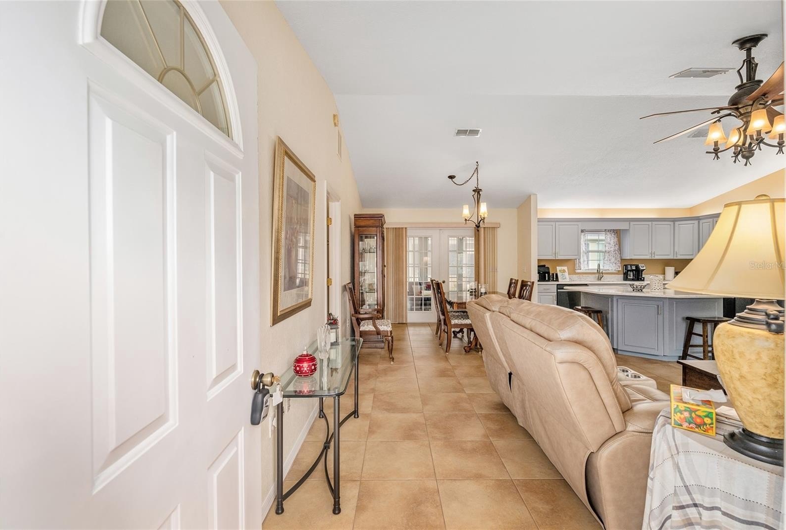 Perfect 2/2/2 Chestnut on a corner lot tucked away on a seldom traveled loop. The Front Porch measures 22 ft long and is the perfect place to have your morning coffee. You can also enjoy your coffee on the Lanai in privacy. This open floorplan Chestnut has been updated with beautiful, professionally painted kitchen cabinets and quartz countertops. The Kitchen features a large breakfast bar with storage underneath and new SS appliances as of 2021, has ambient lighting and was freshly painted a couple years ago. You will find vaulted ceilings in the Living Room, Dining Room & Kitchen and ceiling fans throughout. There is porcelain tile in the main areas and new water resistant laminate flooring (2024) in the bedrooms and both (2) walk in closets. There is an inside Laundry area with upper cabinets for storage. The enclosed Lanai has vinyl windows, vertical shades and indoor/outdoor carpeting. There is a 2 car garage with sliding privacy screens, a utility sink, key-less entry and a work bench. The windows were replaced in 2018. The HVAC was replaced in 2012 (Humidistat). Architectural shingles were installed in 2013. Water Heater in 2020. The Furniture can be part of the purchase with some exclusions (there is a Murphy Bed in the Guest Bedroom). Seller is offering a 1-year Broward Factory Home Warranty with an acceptable offer. Come see this home soon!
