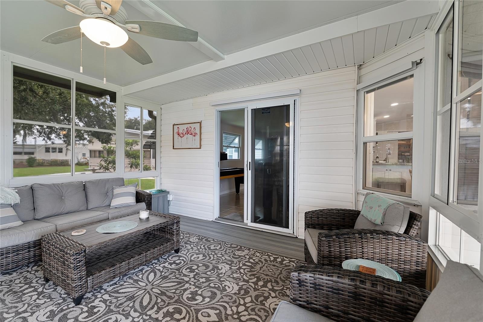 - **2023:** A new entry door and screened enclosure were installed, along with solar screens on the RV port, reinforced support pillars and tie-downs, and a LeafGuard gutter protection system.