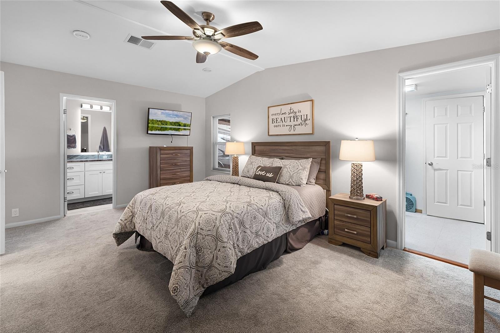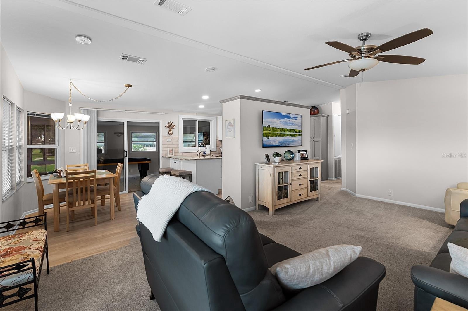 This home feels brand new inside and out, offering a perfect blend of style and functionality for full-time living or seasonal enjoyment. The spacious RV port is designed to accommodate any size Class A motorhome with slides out, complete with full utility hookups for convenience.