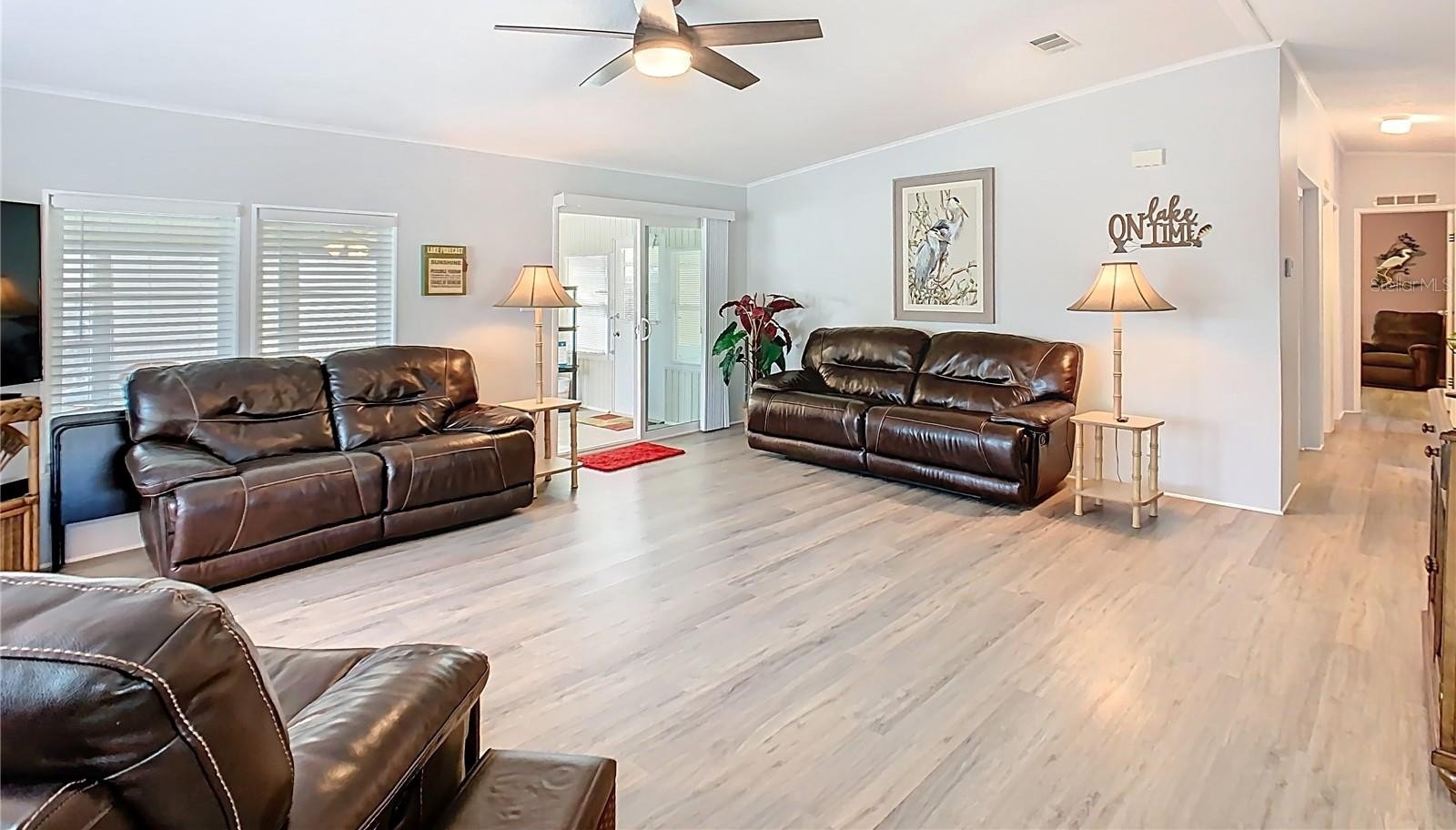 WATERFRONT RETREAT ON LAKE ROSALIE CANAL! Welcome to this beautifully updated 2-bedroom, 2-bath home featuring an open floor plan and peaceful waterfront views. Located on a canal with direct access to Lake Rosalie, a 4,578-acre lake known for its fantastic fishing, this property is perfect for nature lovers and boating enthusiasts alike. Recent updates to this Palm Harbor "EnerGmiser" home include new luxury vinyl flooring throughout, new double-pane windows and sliding glass doors, new ceiling fans with lights, a new A/C and hot water heater, and a 3-year-old Metal Roof — this home offers lower energy costs, comfort and peace of mind. Enjoy quiet mornings on the back porch overlooking the canal as you take in breathtaking sunrises and the abundance of local wildlife. Situated in a peaceful community with no-deed-restrictions, this home is ideal as a full-time residence, weekend getaway, or retirement retreat.