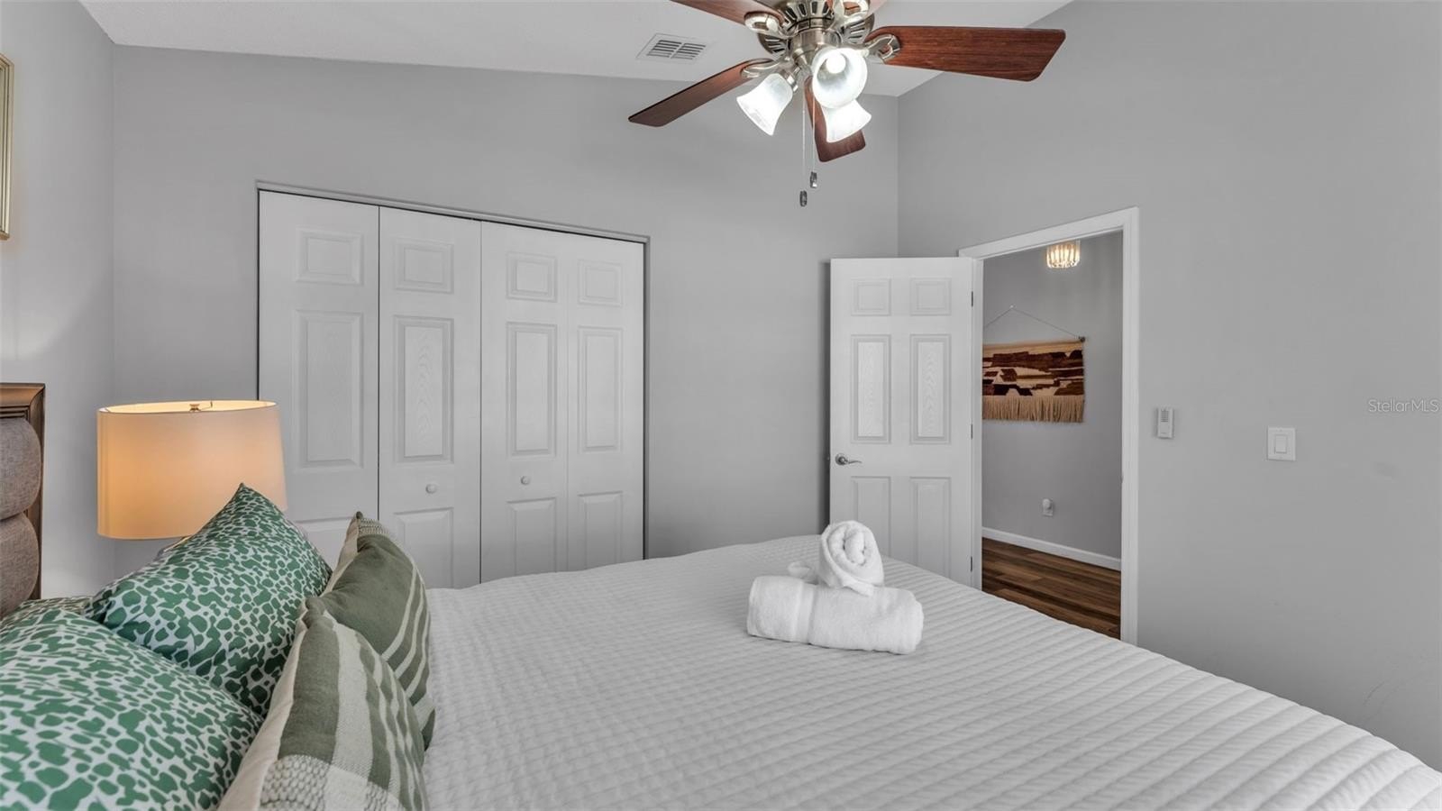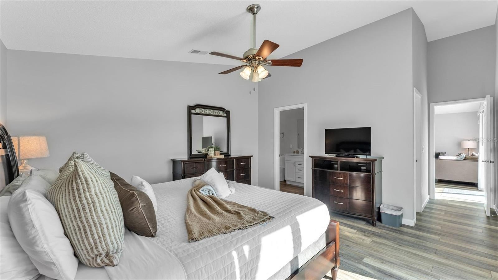 The spacious primary suite offers direct pool access and a rejuvenating ensuite featuring a new soaking tub, walk-in shower, double granite vanities, and a generous walk-in closet — thoughtfully designed for both comfort and elegance.