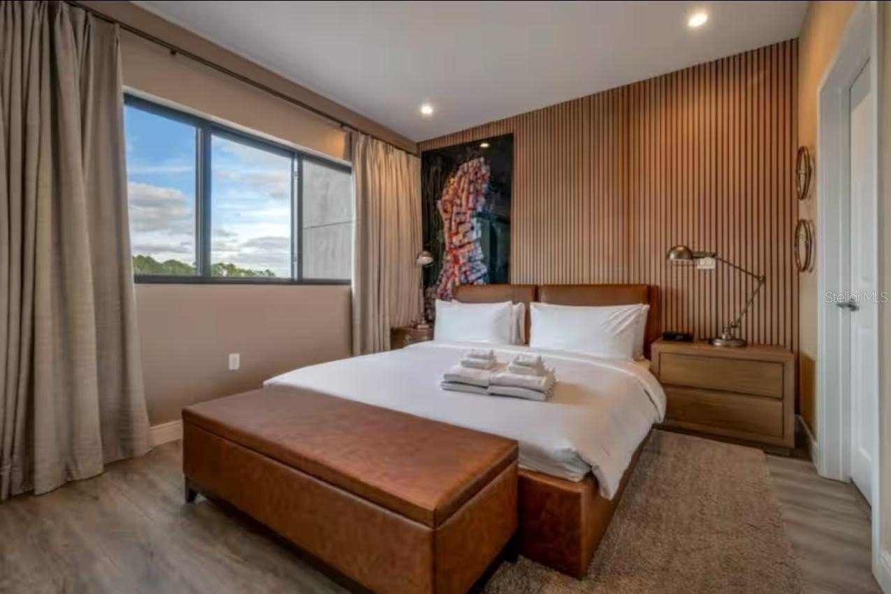 This exceptional two-story townhome in MAGIC VILLAGE RESORT offers meticulously designed living space, featuring 4 bedrooms and 4.5 bathrooms. The open-concept layout is perfect for entertaining vacation guests, while the bright and airy interior guarantees a comfortable and inviting atmosphere. The private outdoor area, complete with a grill and spa bathtub, enhances your leisure experience. Located in a prestigious gated resort community just minutes from Disney and Orlando's top attractions, this luxury unit is an investor's dream, allowing daily rentals. It’s not just a vacation home; it's a safe and vibrant place to live your dream lifestyle. (Amenities construction is set to begin soon.)