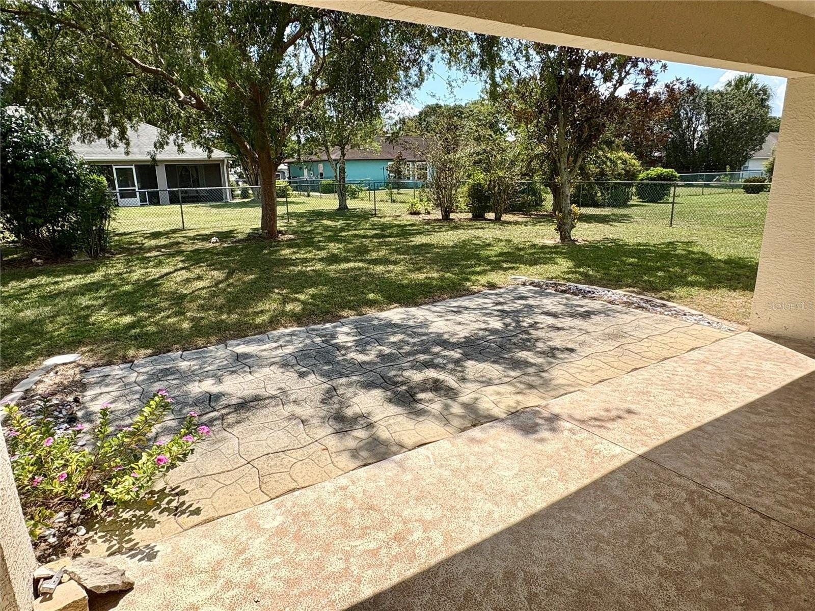 Outdoor features include a large covered lanai with a paver extension, a fenced backyard, an extended driveway, and a 2-car garage. A newer A/C unit was installed in 2022.