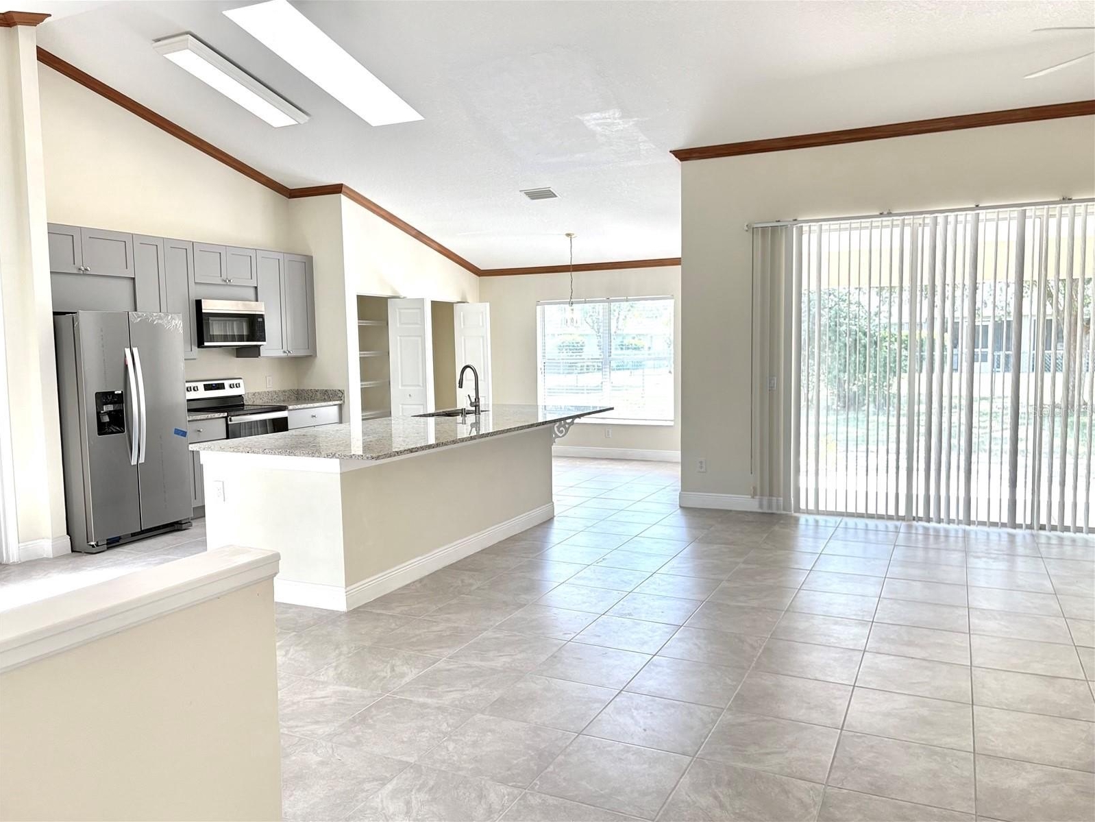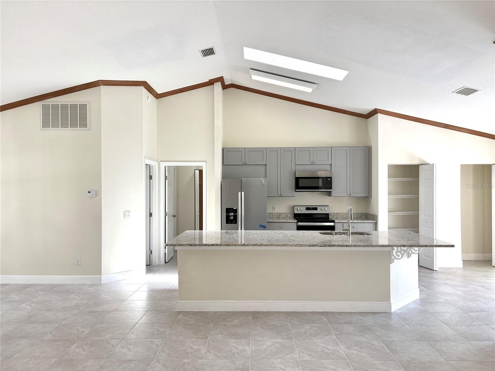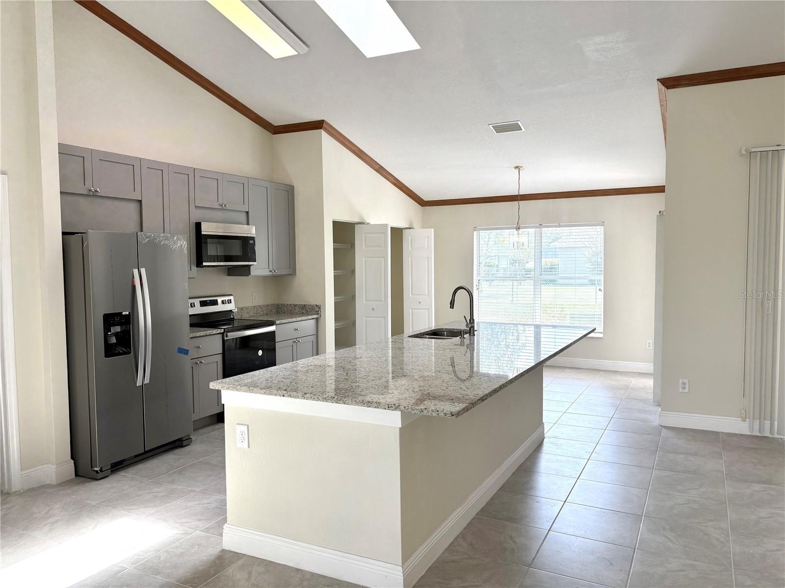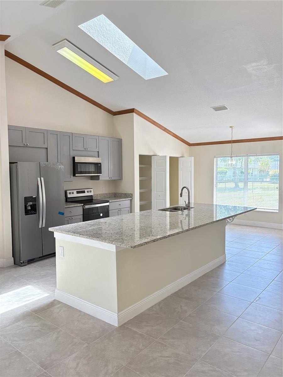 The brand-new kitchen is bright and inviting with skylights, modern cabinetry, stone countertops, sleek finishes, and all-new appliances (washer and dryer not included). Additional upgrades include fresh interior and exterior paint, new ceramic tile flooring, new blinds, updated ceiling fans, new toilets, and dual vanities in the primary bathroom. A convenient laundry room adds to the home’s functionality.