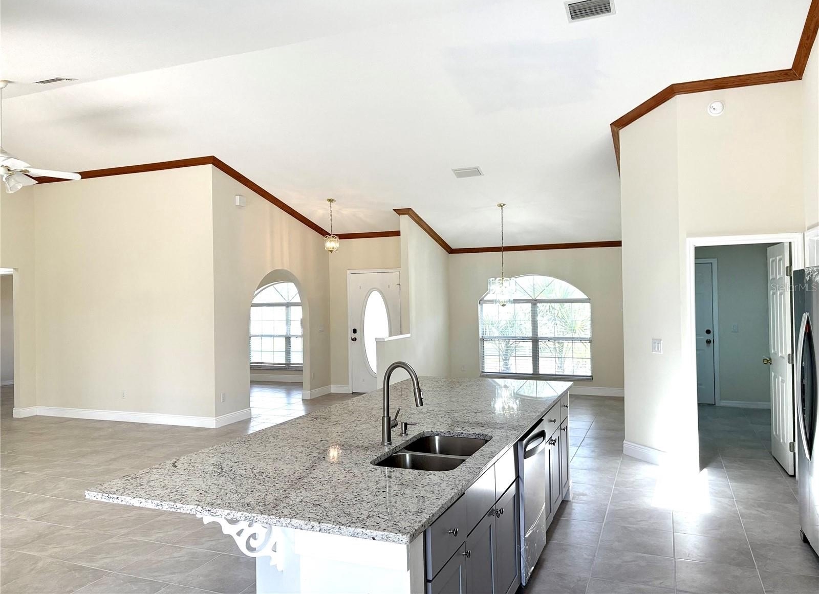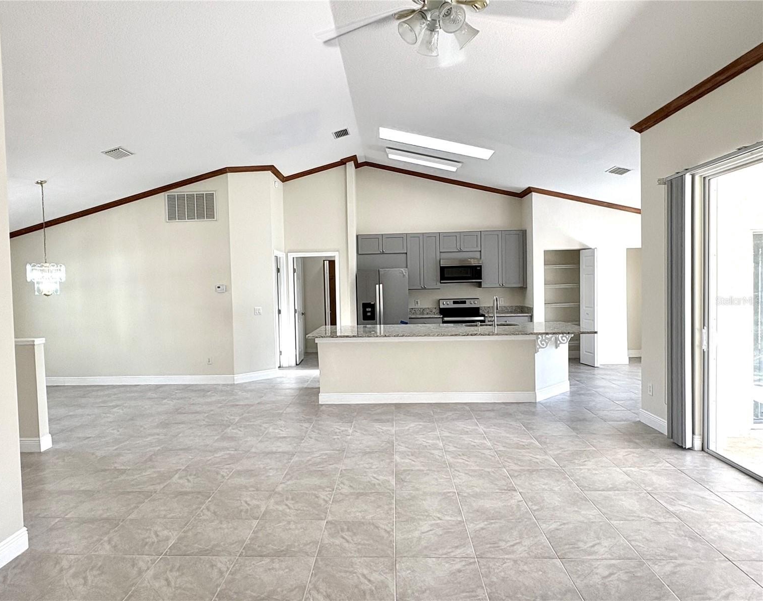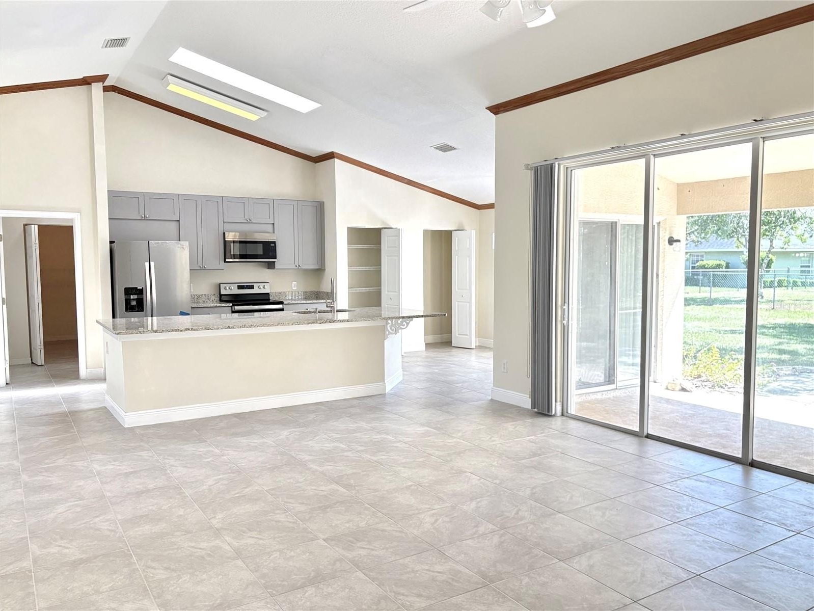 The brand-new kitchen is bright and inviting with skylights, modern cabinetry, stone countertops, sleek finishes, and all-new appliances (washer and dryer not included). Additional upgrades include fresh interior and exterior paint, new ceramic tile flooring, new blinds, updated ceiling fans, new toilets, and dual vanities in the primary bathroom. A convenient laundry room adds to the home’s functionality.