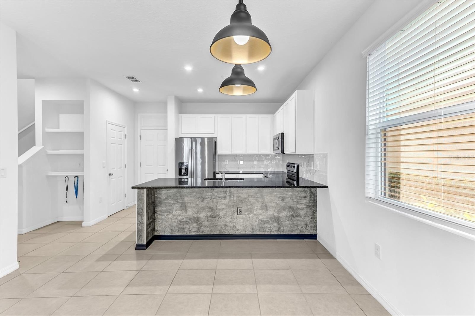 Welcome to this modern and spacious 3-bedroom, 2.5-bathroom townhome located in the desirable Tapestry community in Kissimmee.With itssleek stainless steel appliances,beautiful ceramic tile floors, and bright, open layout, this home offers both style and functionality. The gourmetkitchen features a walk-in pantry and an expansive breakfast bar-perfect for meal prep,casual dining, or entertaining guests. Upstairs, you'1Ifind all three bedrooms, including the luxurious owner's suite with vaulted ceilings and a large walk-in closet. The master bath is a true retreat,with dual sinks, a glass-enclosed step-in shower, and plenty of space to unwind. A cozy covered balcony off the second floor provides a peacefuloutdoor space to enjoy your morning coffee or evening breeze. The second floor also includes a convenient laundry closet for added functionality.This home is ideally located just minutes from Walt Disney World and other major Central Florida attractions, offering an unbeatable location forboth relaxation and adventure.With easy access to major highways, commuting and exploring the area are a breeze. Tapestry offers a host ofresort-style amenities, including a 24-hour guard-gated entrance,fitness center, sparkling pool, playground, and beautifully landscapedsidewalks. Experience the perfect combination of convenience, luxury,and comfort in this exceptional townhome.