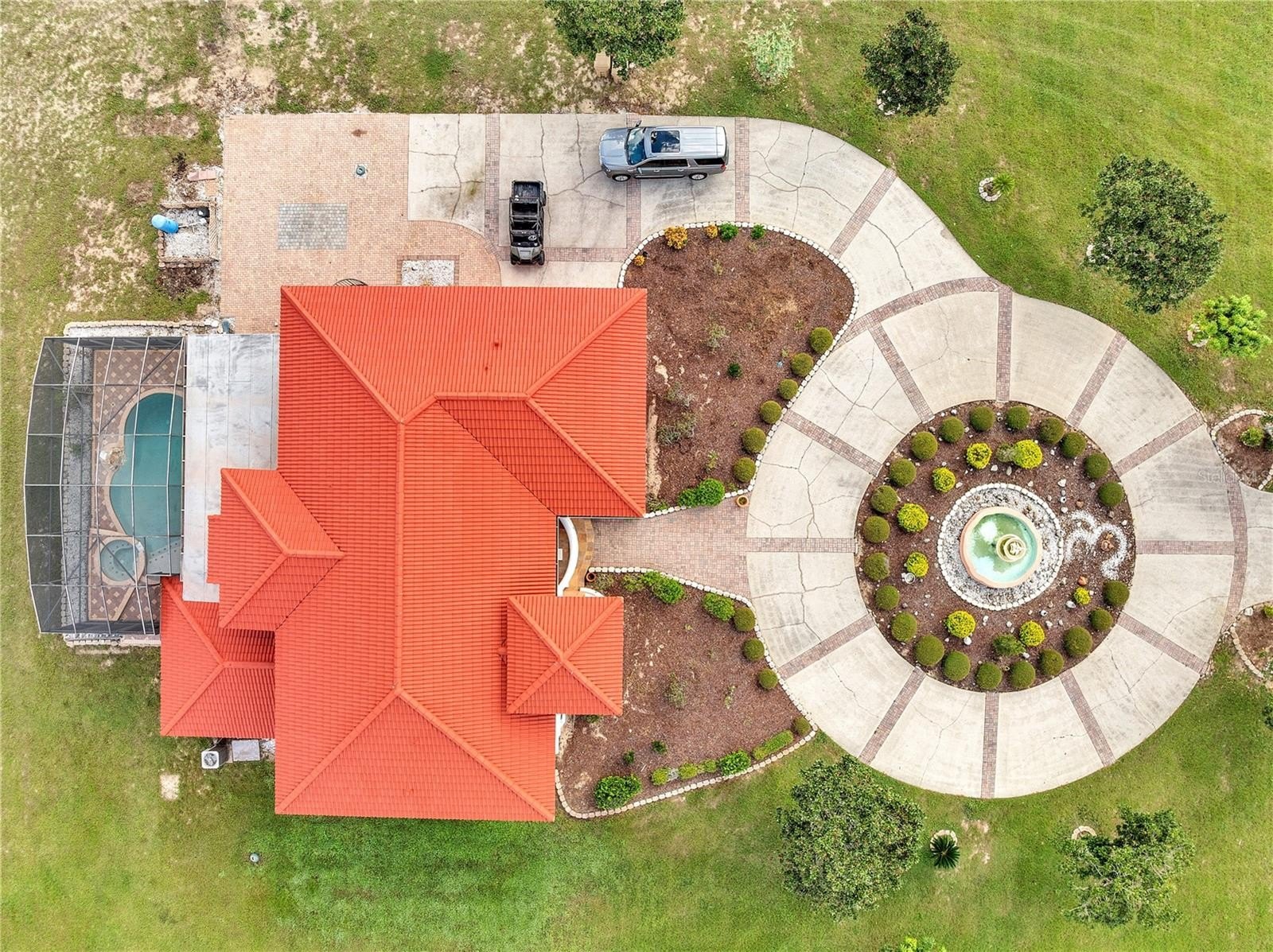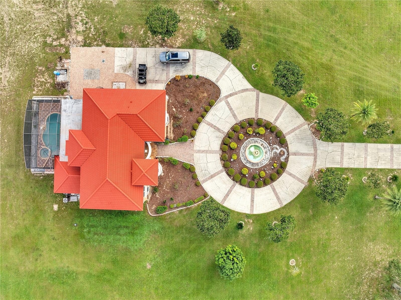 From the moment you arrive, the impressive entry with a water fountain sets the tone. The expansive driveway allows parking for multiple vehicles, making every arrival seamless. Inside, the home blends warmth and sophistication with beautiful hardwood floors in select areas, a cozy fireplace, and immaculate finishes throughout. The open layout creates bright, inviting spaces designed for everyday living and entertaining. Outdoors, enjoy your private retreat with a sparkling pool, surrounded by serene acreage that gives you both privacy and room to breathe. Located just minutes from the Florida Turnpike, this property combines the tranquility of country living with quick access to Orlando, shopping, and Central Florida’s attractions. Move-in ready and maintained to perfection — this is more than a home, it’s a lifestyle.