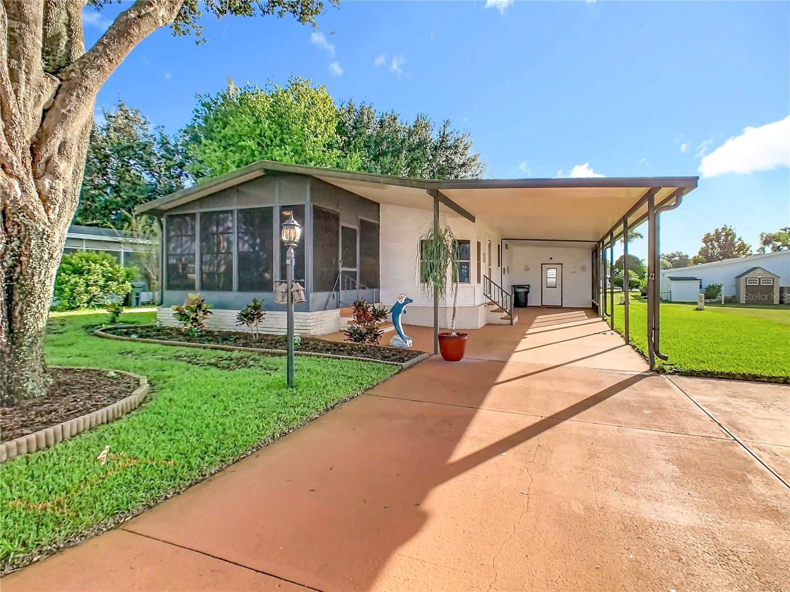 Wonderful opportunity to acquire a nicely maintained 2 bed, 2 bath property in the ever popular 55+ golf community of Polo Park West!! The home features a well designed open floorplan plus an 11.6 x 13.8 Florida room and also a shed/workshop. Extremely spacious driveway offers a 2 car carport plus room for a further 2 cars and a golf cart!! The home has been replumbed and benefits from new flooring, new storm windows, new landscaping and its own IRRIGATION WELL!! Polo Park offers many activities and amenities including 2 pools, 2 clubhouses, tennis & pickleball courts, horseshoes, and fitness center. All for the low HOA fees of $60 per month! The wonderful community enjoys a great location directly off Hwy 27, minutes from 192 and easy access to to I-4, theme parks, grocery stores, medical facilities, restaurants, shopping, Margaritaville and more...DON'T MISS OUT! Ask your agent to schedule a viewing today!