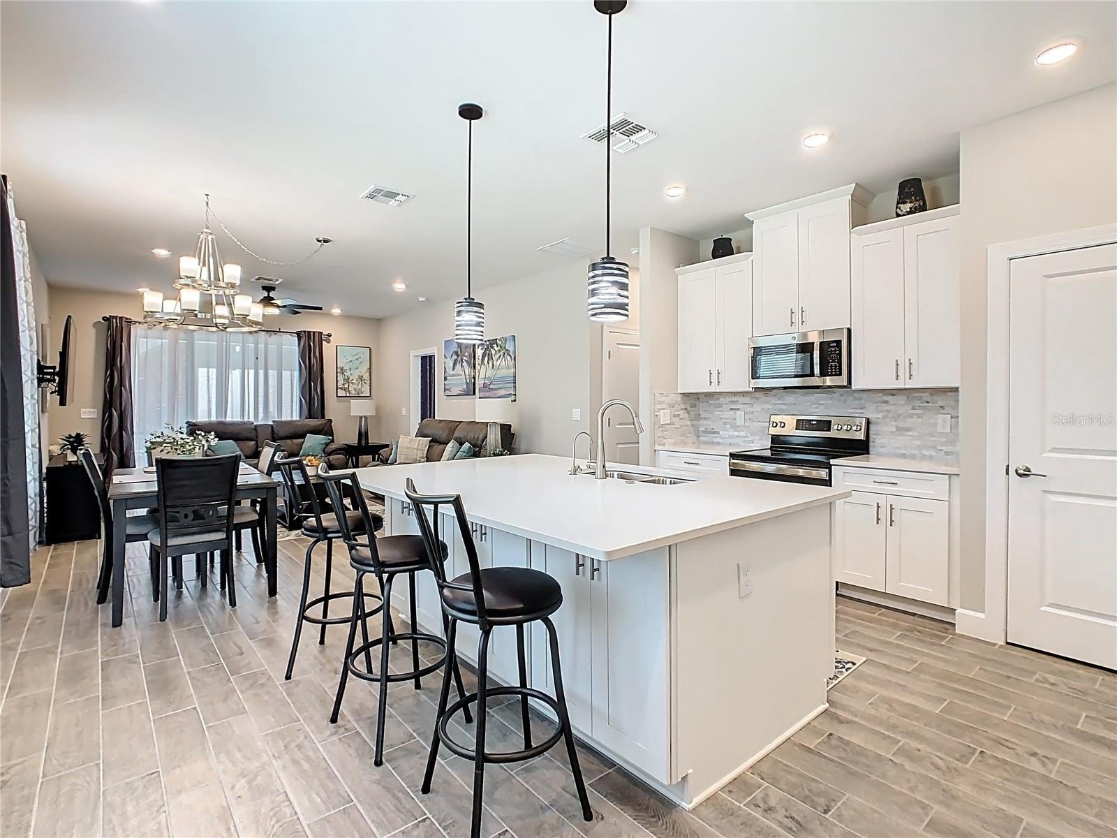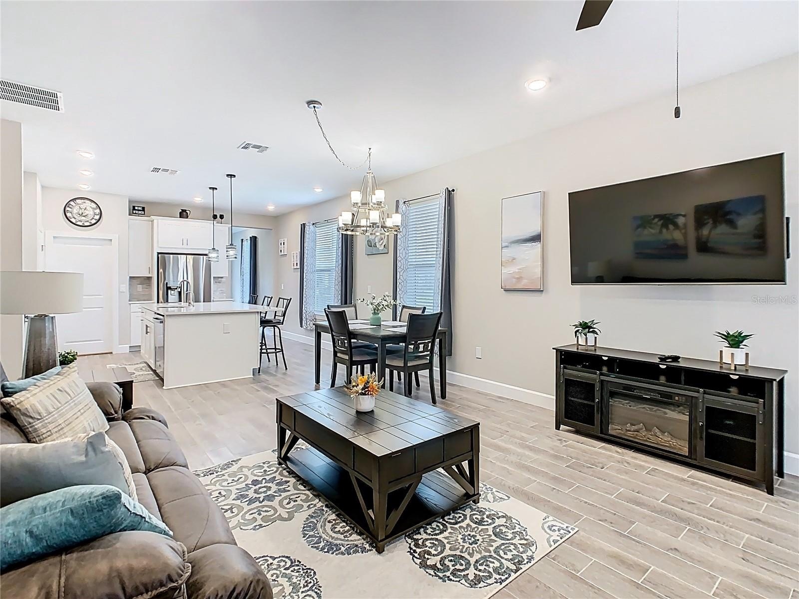 Don't miss the opportunity to purchase this nearly new 2022 built Amalfi model home in the desirable Viareggio neighborhood at this amazing price. This home has only been used for 2 seasons for 3 months each season. Price includes home as shown and golf cart. Tastefully decorated and updated. Why buy a Villa or older home when you can own this single like new home for the just about the same price. TILE FLOORING THROUGHOUT MAIN AREA AND WET AREAS, KITCHEN ISLAND, PENDANT LIGHTING, 36"CABINETS WITH MOLDING,SS LG REFRIGERATOR WITH SMART GRID WIFI, WATER, ICE CUBES, AND CRUSHED ICE IN DOOR, UNDER ISLAND ADDITIONAL CABINETS WITH SHELVING, DOUBLE SS SINK WITH SINGLE HANDLE FAUCET, AQUASANA PURIFIED WATER DISPENSER, AND PUSH BUTTEN GARBAGE DISPOSAL. QUARTZ COUNTERS, NEUTRAL TILE BACK SPLASH, AND PANRTY. CEILING FANS IN GREAT ROOM, AND BOTH BEDROOMS, LG WASHER/DRYER, REFRIGERATOR, WINDOW TREATMENTS, FURNITURE AND GOLF CART INCLUDED. Homeowners Association fee includes BlueStream TV and Internet, lawncare, lawn irrigation, and 24 hour gated security. ***Solivita is an active adult 55+ community located in Kissimmee, Florida. It is approximately 50 minutes from Disney World & the Orlando International Airport. Solivita has a total of 5,470 homes. Approximately 10,000 - 11,000 persons live in Solivita during the winter while approximately 7,500 live in Solivita during the summer. Enjoy your active years in this piece of paradise. Solivita amenities include: - a manicured SOFTBALL diamond & field - 36 holes of CHAMPIONSHIP GOLF that can be played by joining the Stonegate Golf Club or paying as you go - 2 STATE of the Art AMENITY centers with updated exercise equipment, yoga studio & meeting rooms - 3 restaurants - 14 HEATED POOLS 17 PICKLEBALL courts - 9 TENNIS courts - 4 BOCCE BALL courts - 4 SHUFFLEBOARD courts - 3 HORSESHOE pits - a BILLIARDS room - miles of bike paths - 2 DOG PARKS (Small & LargeDogs) - Corn Hole - Tot Lot PLAYGROUND - COMMUNITY GARDEN - over 250 resident clubs. The HOA: - maintains the LANDSCAPING & IRRIGATION systems in the common areas as well asat individual homesites - maintains the roads throughout the community - PROVIDES SECURITY with gate guards and mobile patrols including the Polk County Sheriff - allowsAUTOMATED GATE ACCESS for residents via license plate readers - provides residents with Fiber Optic Internet & TV service.***Poinciana Lakes Plaza is a MAJOR NEW SHOPPINGCENTER that opened directly across from the Solivita Main Gate in Summer of 2024. It features Sprouts Grocery, TJ MAXX, Ross, Burlington, Rack Room Shoes, 5 Below, Ulta,Outback, First Watch, 5 Guys, Urgent Care, Dentist, TD Bank, Petco, Mike's Subs & Hair Cuttery PLUS MORE TO COME.***