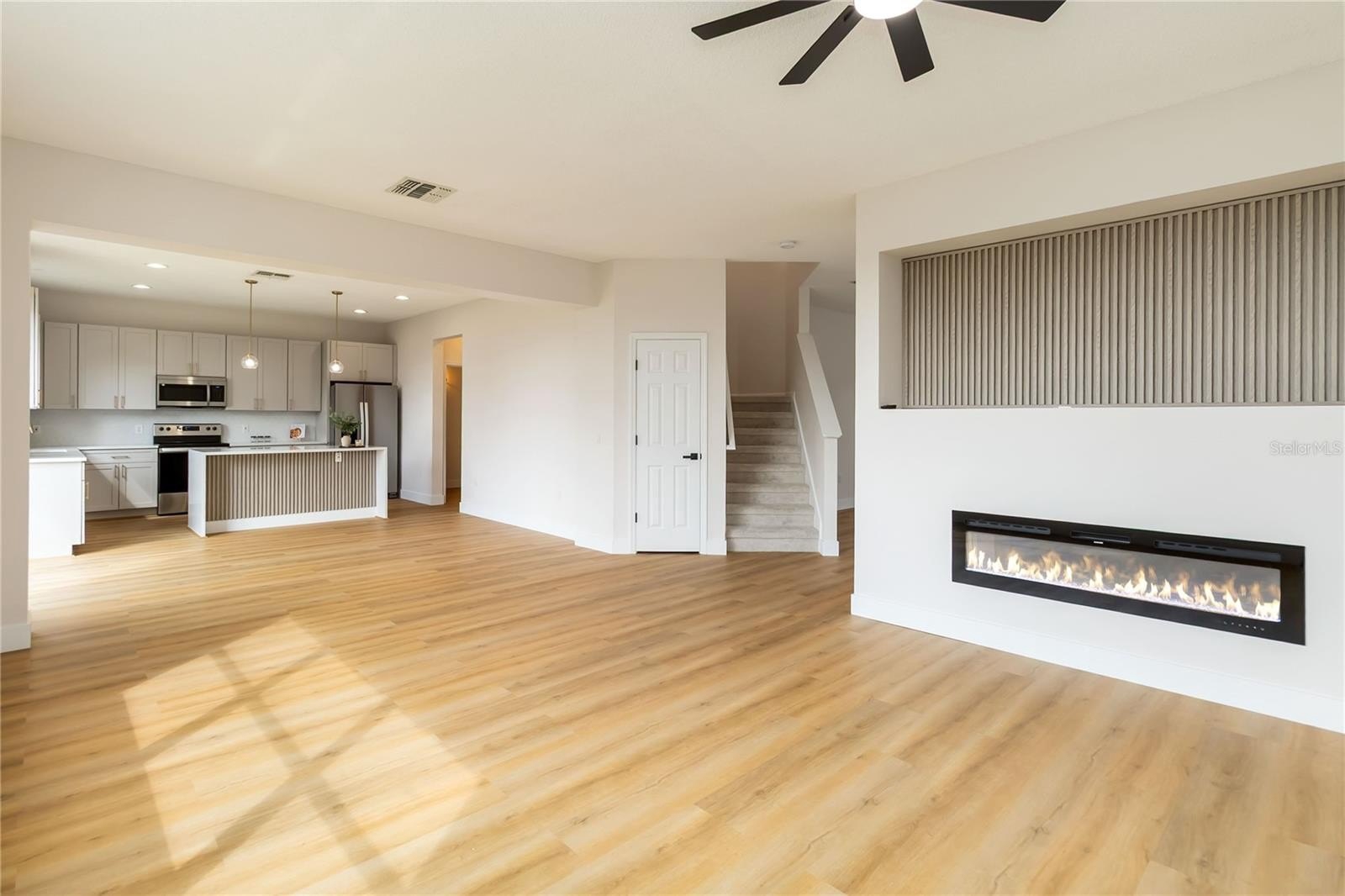 One or more photo(s) has been virtually staged. Price improvement, seller motivated! Completely renovated 2,800 sq ft home—better than new! Brand-NEW ROOF & HVAC (2025), updated inside and out with fresh finishes, designer details, and an open, modern layout that offers more space and character than new construction. The fully remodeled kitchen is a true showstopper, featuring high-quality plywood cabinets, quartz countertops with a striking waterfall island—a feature rarely found in other homes—and stainless-steel appliances. The open-concept layout flows into the living area, where a stunning 60” electric fireplace set into a stylish accent wall creates the perfect focal point. Downstairs showcases new luxury waterproof stone composite flooring, fresh interior and exterior paint, modern lighting and ceiling fans, and new doors that complete the crisp, contemporary feel.