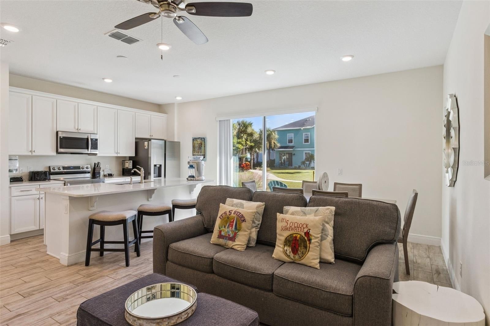 Escape to the ultimate "Island Time" lifestyle with this stunning, fully furnished 3-bedroom, 3-bathroom townhome at 2993 Caribbean Soul Drive! This property is a jewel within the highly sought-after Margaritaville Resort Orlando, offering a true turnkey vacation experience. Its location couldn't be better—you're mere steps away from one of the resort's beautiful community pools, inviting you to dive into paradise the moment you arrive. Owners and guests enjoy access to the resort's phenomenal amenities, including multiple lagoon pools, a relaxing lazy river, the full-service St. Somewhere Spa, the Fins Up Fitness Center, delicious dining options, lively bars, and the adjacent Promenade at Sunset Walk entertainment district.