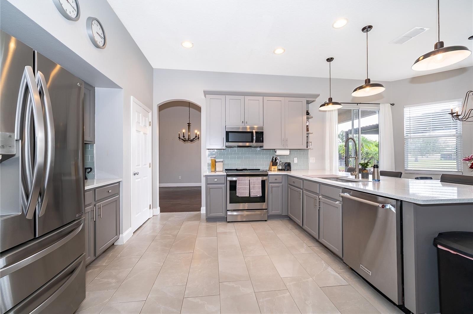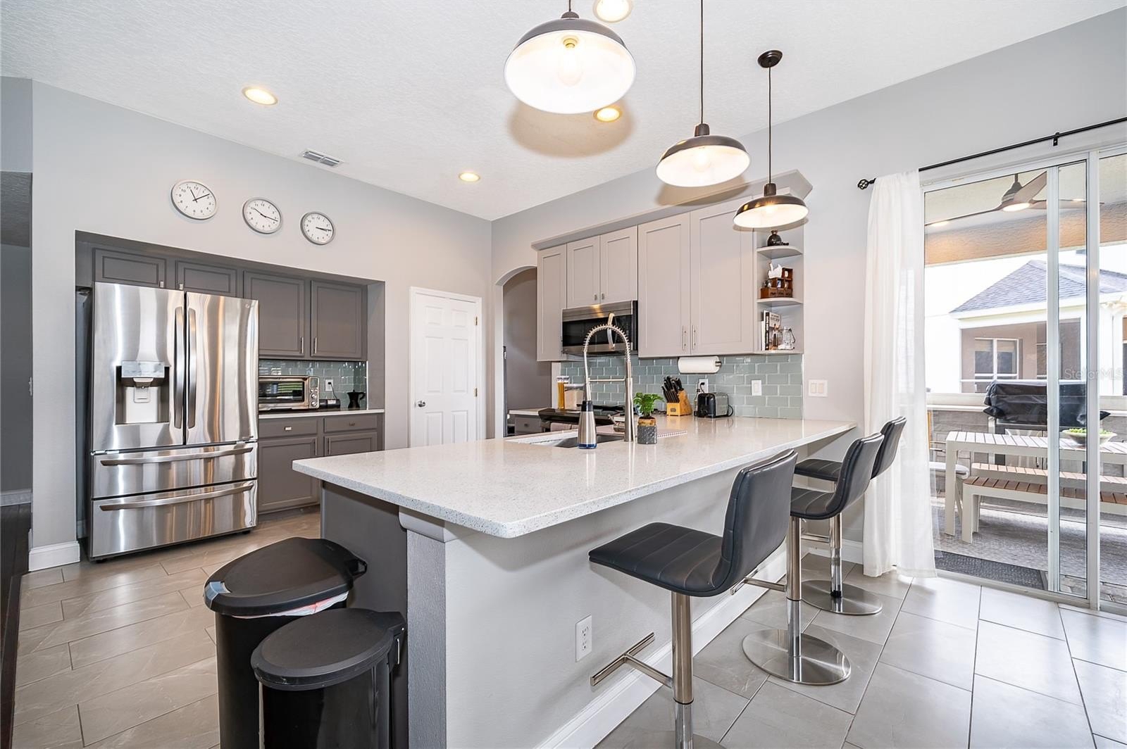The chef-inspired kitchen offers granite countertops, stainless steel appliances, and a cozy breakfast nook—ideal for morning routines or entertaining guests. The spacious primary suite is a true retreat, complete with a spa-like bath, dual vanities, soaking tub, and a large walk-in closet. Step outside into your own private sanctuary: a stunning outdoor kitchen and covered lanai overlooking a serene lake view. Whether it’s weekend BBQs, family celebrations, or peaceful mornings with coffee and birdsong, this backyard was made for connection and relaxation.
