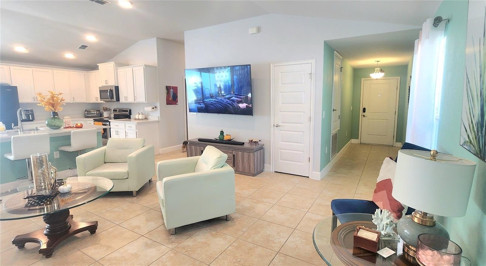 This home offers a stunning blend of comfort and style, featuring **quartz countertops**, **tile flooring throughout**, and a **covered screened-in lanai. ** perfect for outdoor relaxation. The **garden tub**, **separate shower**, **walk-in closet**, and **double sinks** add luxury to the primary suite. Additional conveniences include a **garage door opener** and a fully **fenced** yard for privacy. Located in a desirable community with access to a **resort style pool** and **playground**, and cabana, this home truly has it all.