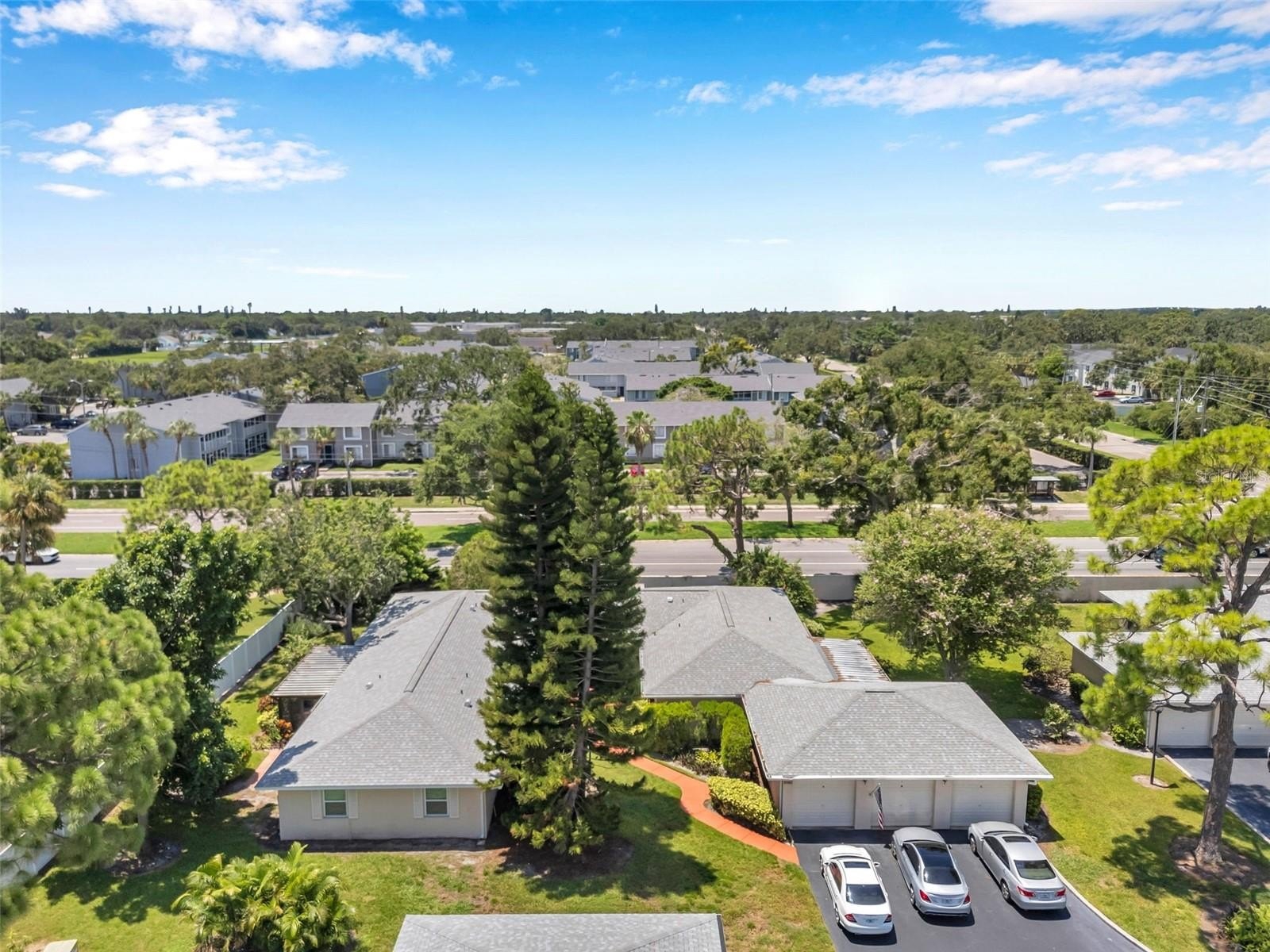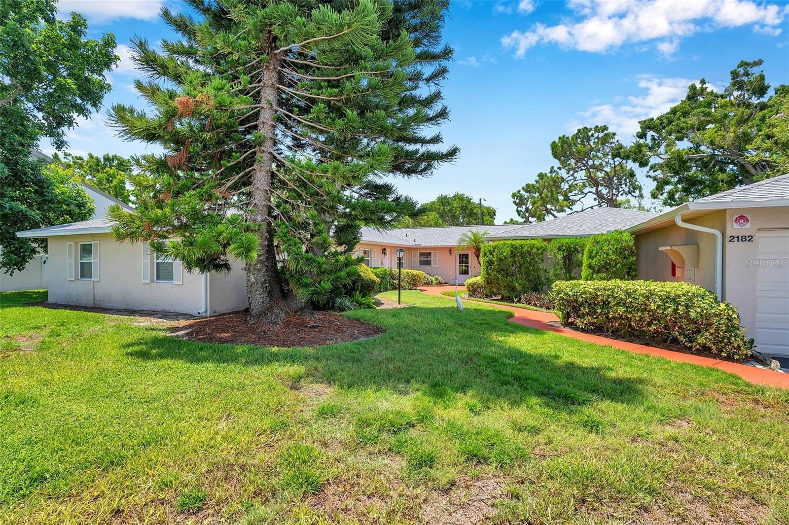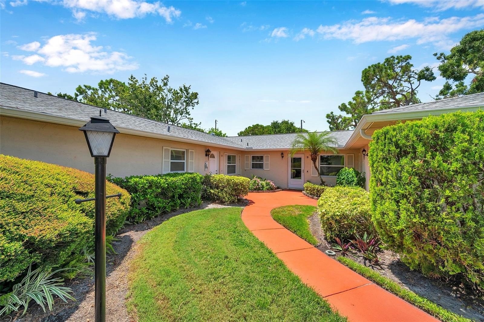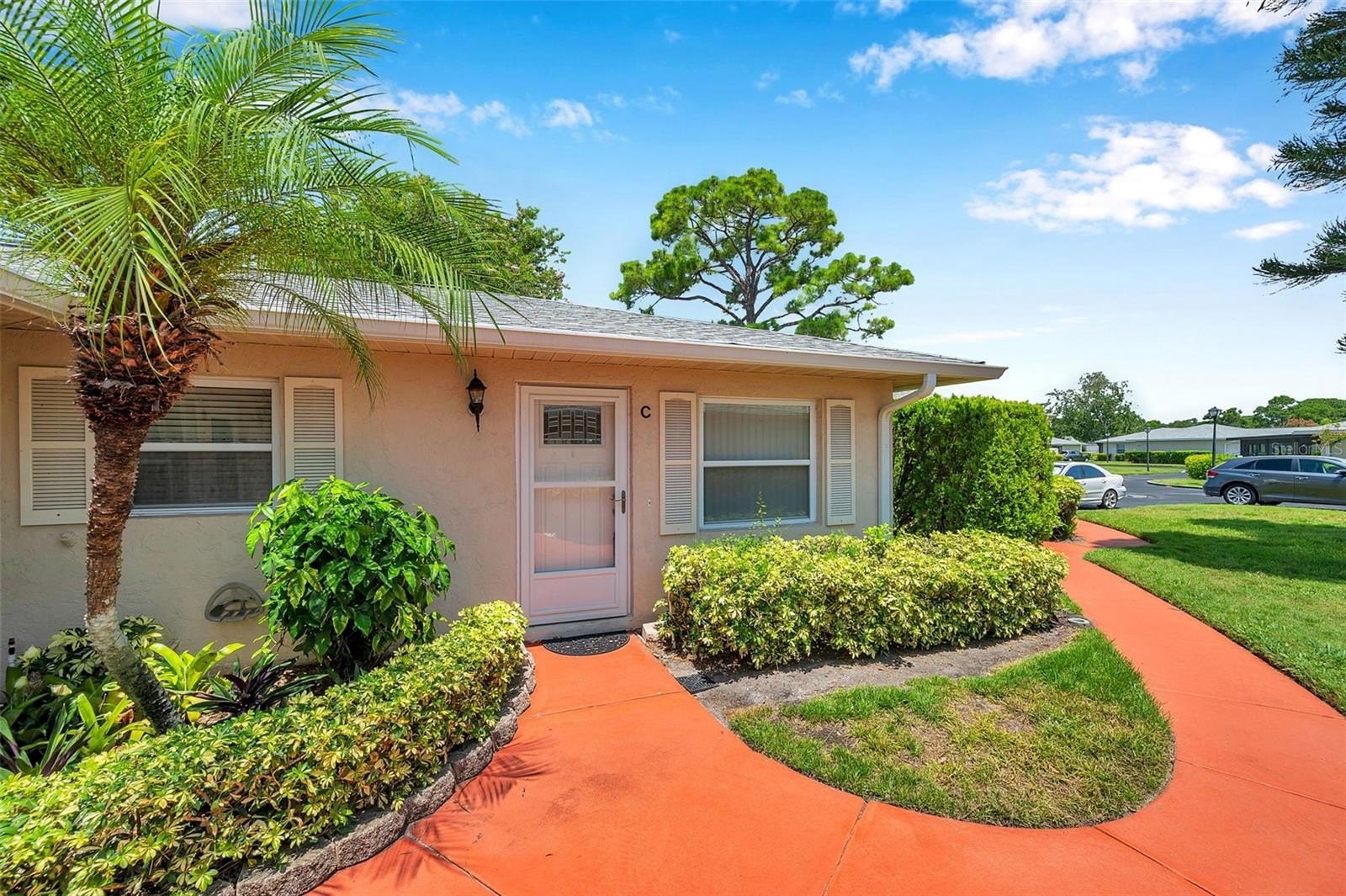 Welcome to Country Club Villas! This tastefully decorated 2 bedroom, 2 bath home also comes with a private 1 car garage and storage! The main living area is shared with the dining area with twin sets of French Doors that open to a large, enclosed air-conditioned Florida Room which overlooks a tranquil landscaped backyard. The Florida Room contains approximately 188 sq ft. of space to use as an office, workout room, craft area, or additional entertaining space. There is also an indoor laundry that comes with a Full-size Washer and Dryer. The bedrooms are quite sizable. The master bath ensuite includes a separate vanity space from the walk in shower and two built-in closets. The guest bedroom has a generous sized walk-in closet, and the guest bath has a tub/shower combo. The location of this villa puts you close to grocery stores, shops, numerous dining options and is a short commute from the bustling downtown and waterfront area of St Petersburg with its boutique shopping, dining, museums, and many entertainment venues. It is a short drive to Fort DeSoto and the beautiful sands of St Petersburg Beach. Easy commute to Tampa and Tampa International Airport to the north and the iconic Skyway Bridge and Sarasota/Bradenton area to the south. Monthly maintenance fee includes exterior building maintenance, grounds maintenance, community pool, cable TV, water, sewer and trash and internet. Roof replaced in 2022.