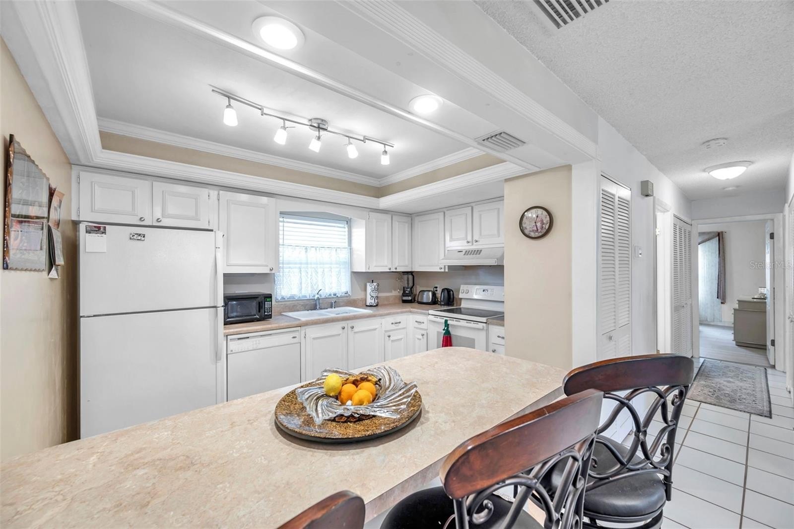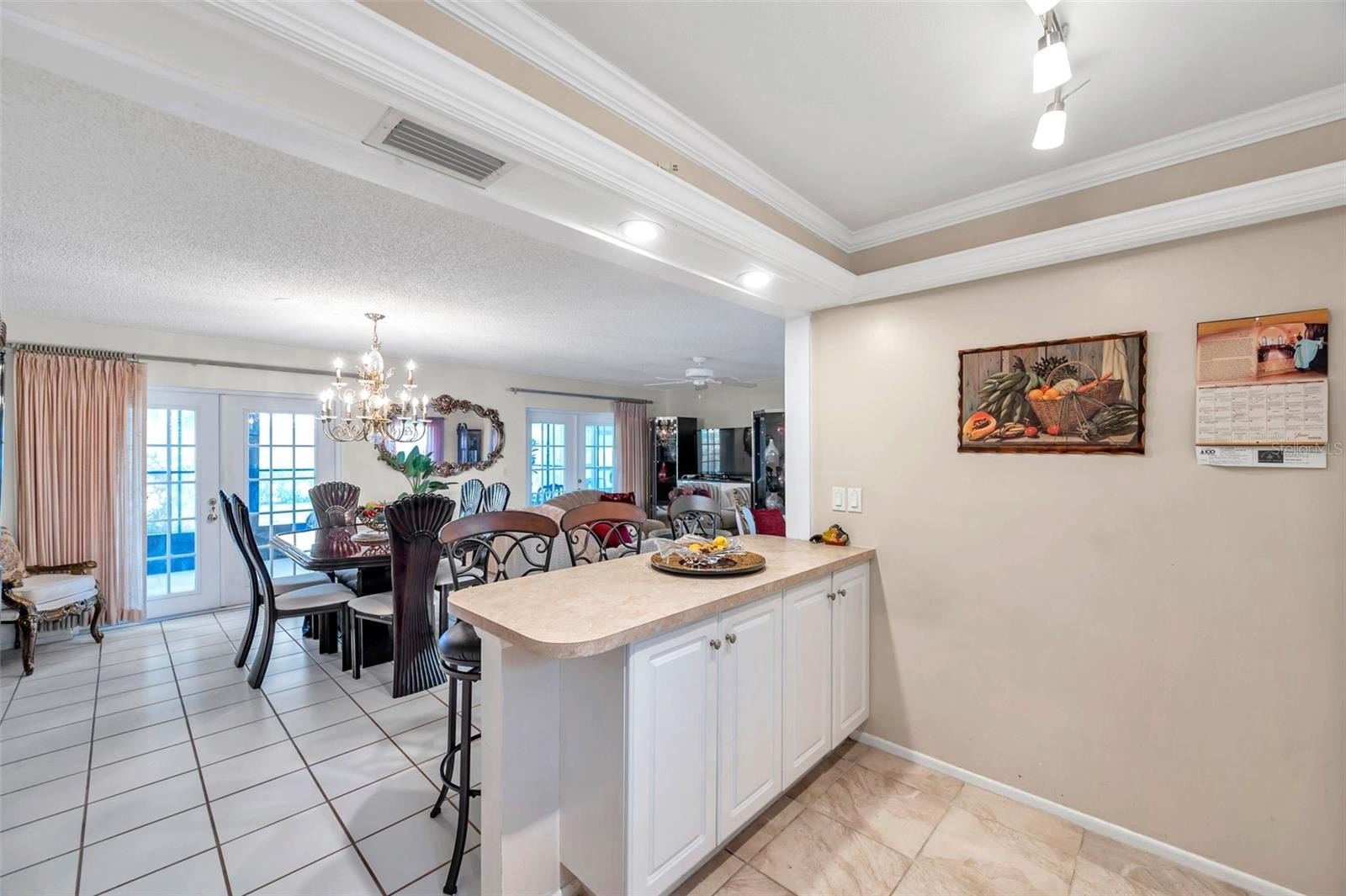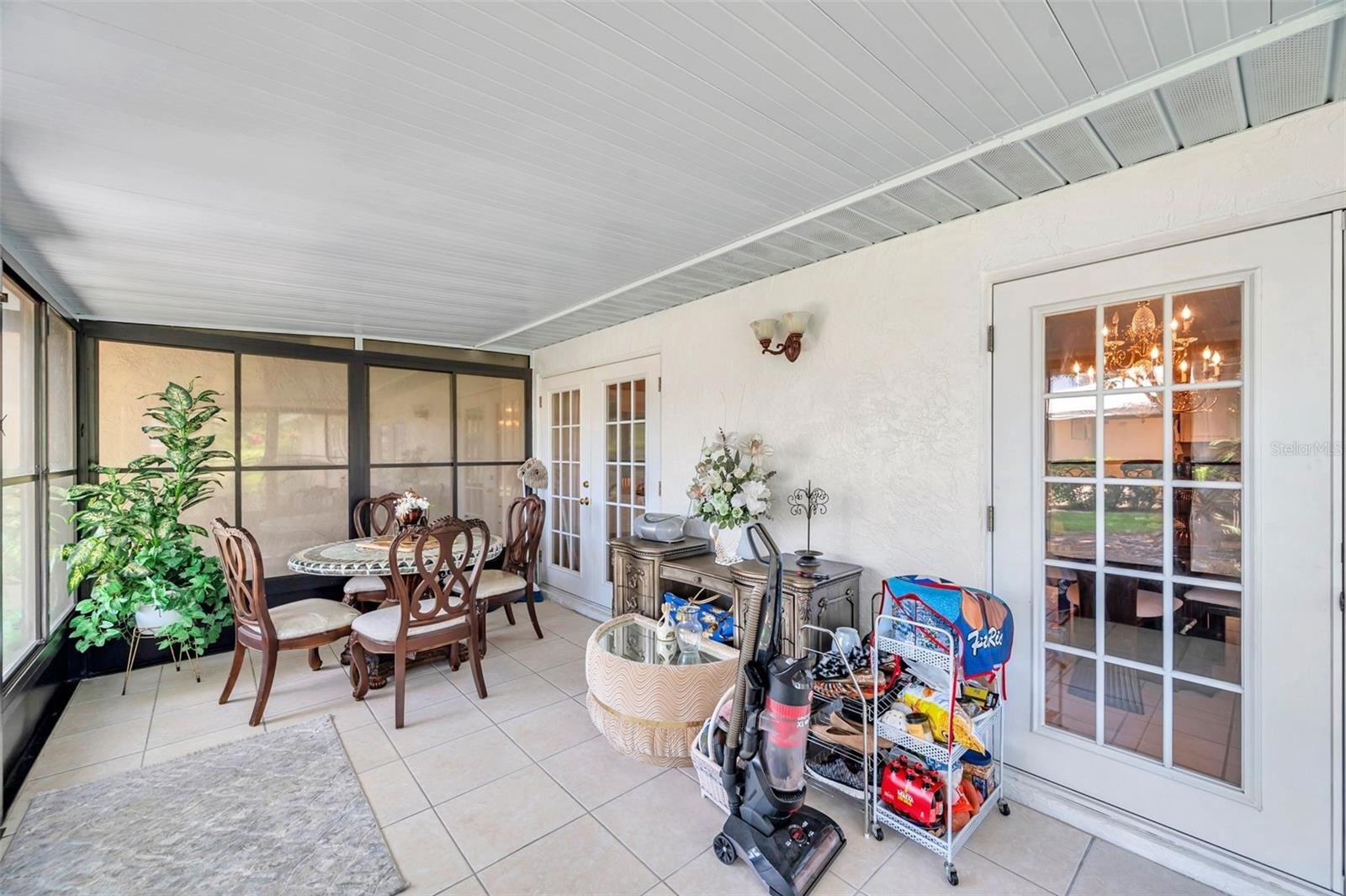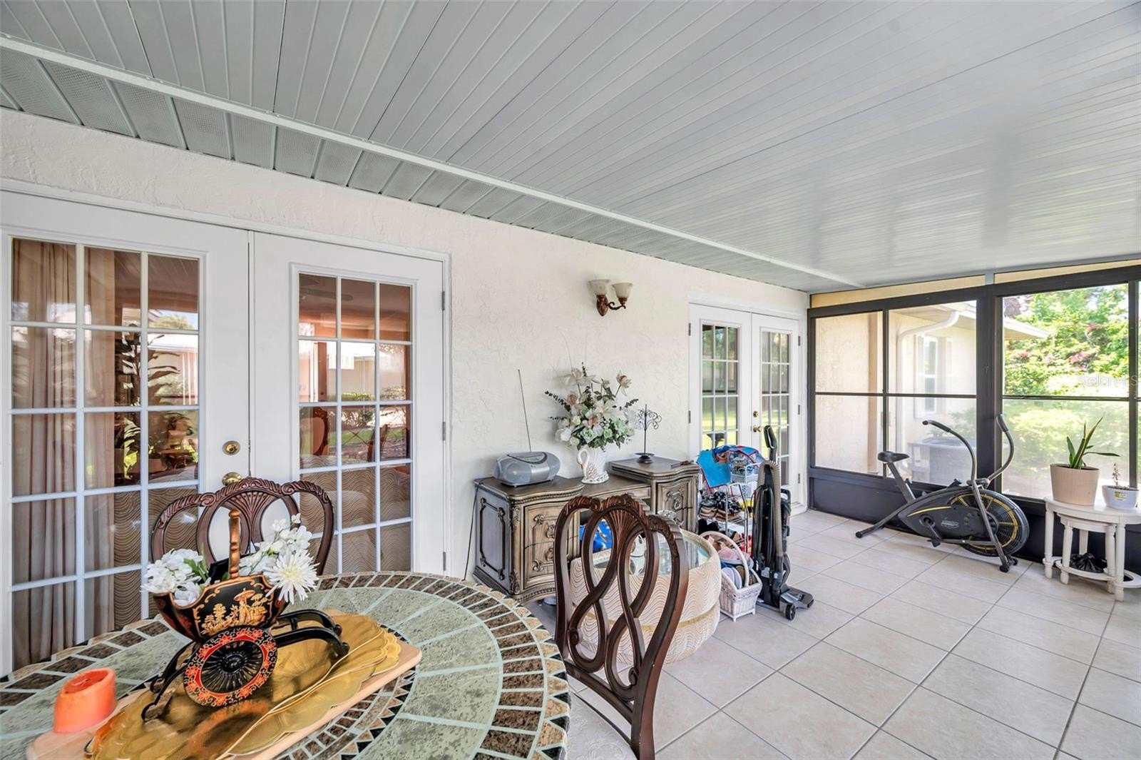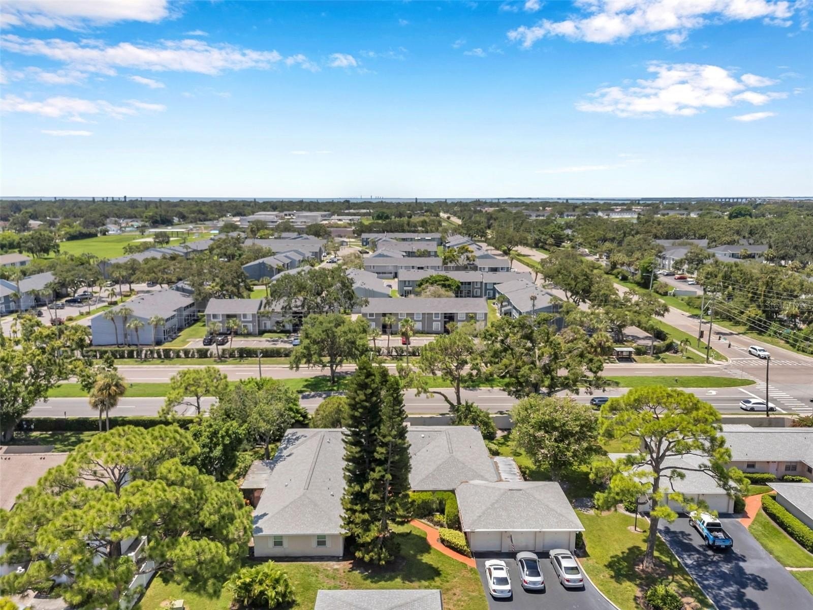 Welcome to Country Club Villas! This tastefully decorated 2 bedroom, 2 bath home also comes with a private 1 car garage and storage! The main living area is shared with the dining area with twin sets of French Doors that open to a large, enclosed air-conditioned Florida Room which overlooks a tranquil landscaped backyard. The Florida Room contains approximately 188 sq ft. of space to use as an office, workout room, craft area, or additional entertaining space. There is also an indoor laundry that comes with a Full-size Washer and Dryer. The bedrooms are quite sizable. The master bath ensuite includes a separate vanity space from the walk in shower and two built-in closets. The guest bedroom has a generous sized walk-in closet, and the guest bath has a tub/shower combo. The location of this villa puts you close to grocery stores, shops, numerous dining options and is a short commute from the bustling downtown and waterfront area of St Petersburg with its boutique shopping, dining, museums, and many entertainment venues. It is a short drive to Fort DeSoto and the beautiful sands of St Petersburg Beach. Easy commute to Tampa and Tampa International Airport to the north and the iconic Skyway Bridge and Sarasota/Bradenton area to the south. Monthly maintenance fee includes exterior building maintenance, grounds maintenance, community pool, cable TV, water, sewer and trash and internet. Roof replaced in 2022.