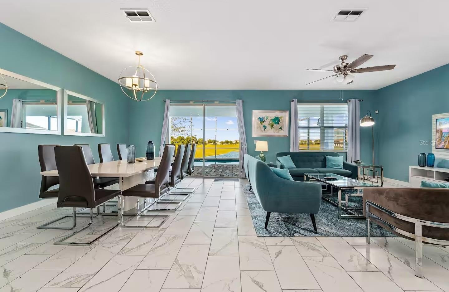 MUST SEE THIS FULLY DISNEY-THEMED POOL HOME WITH LAKE VIEW IN ONE OF THE MOST FAMOUS GOLF RESORTS NEAR ORLANDO: CHAMPIONS GATE COMMUNITY! OWNERS SPENT $125,000 IN UPGRADES! Super low HOA fees of $531/month! This impressive 8-bedroom, 5-bathroom estate has been professionally designed by an interior decorator, making it the ultimate retreat for a fun-seeking family or groups looking for an unforgettable vacation experience. With exceptional reviews on Airbnb/VRBO, this property comes with positive rental history, with potential for generating even more rental income. Actively managed across many platforms and will transfer to new owners. Turn-key and ready to generate income from day one. There are many professionally decorated/themed rooms with custom murals featuring Super Mario Brothers, Mario Kart, Yoshi and Bowsers Castle. There is a life size Nintendo Switch gaming station, air hockey table, foosball table and two classic gaming stations. Relax with family in the private Movie room with theatre seating, large projection screen and surround sound! Spend an afternoon with friends around your private heated pool with comfortable patio furniture, outdoor dining area and ping pong table! Don’t forget, this home is one of the few in the area with a lake view! Enjoy a good meal in the oversized kitchen with stone countertops, stainless steel appliances and huge island. Oversized master suite downstairs with large vanity, garden tub and separate shower. Champions Gate world-class amenities include: 10,000 sq/ft clubhouse, fitness center, pools, lazy river, waterslide, theater, game room, restaurant, tiki bar, cabanas, tennis, volleyball, two Greg Norman designed golf courses, Resort-style dining, shopping and entertainment. Located just minutes from Walt Disney World, Universal Studios and Orlando attractions. HOA includes Internet/Cable and Lawn maintenance and Daily Trash. Schedule a showing TODAY! NO FLOOD ZONE. HVAC and HW-Heater recently replaced. Garage was converted to an entertainment room, but can be converted back to traditional garage.