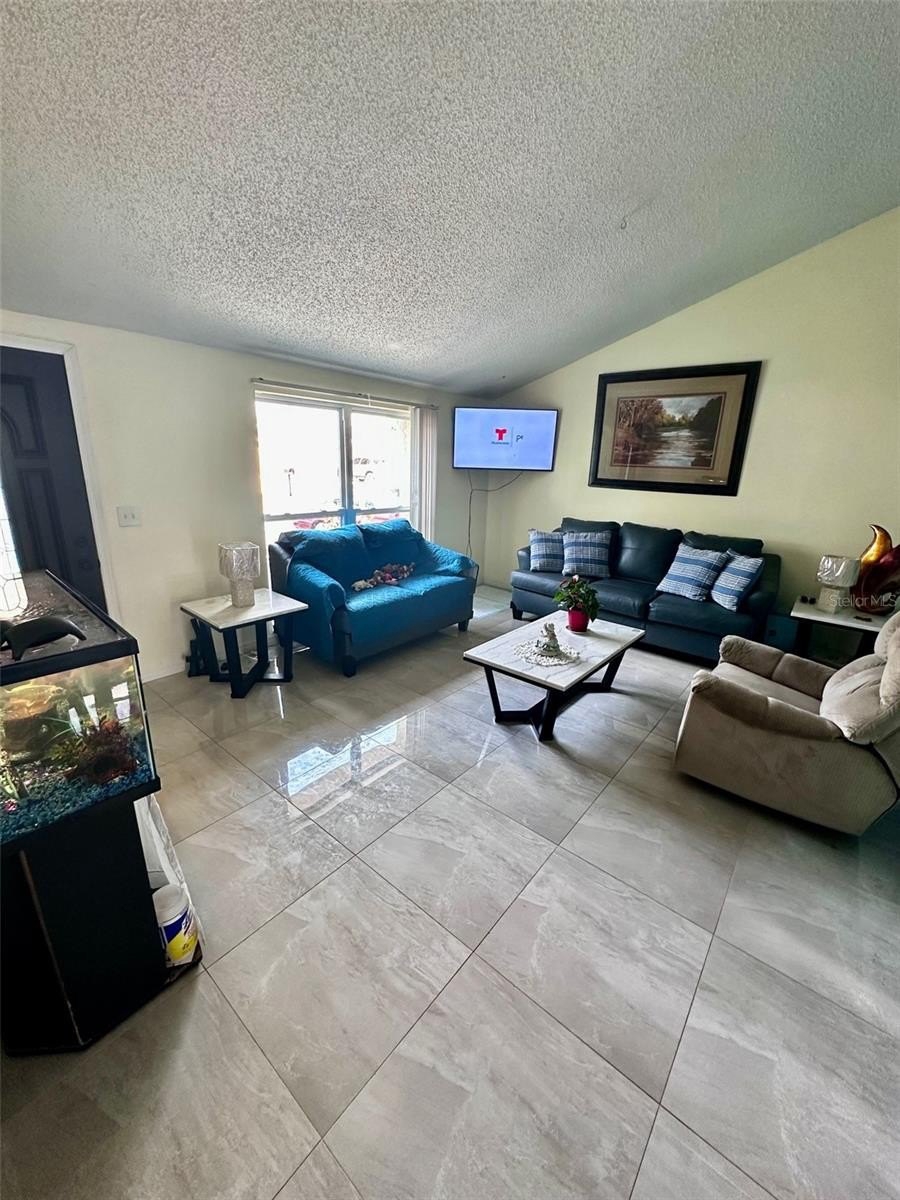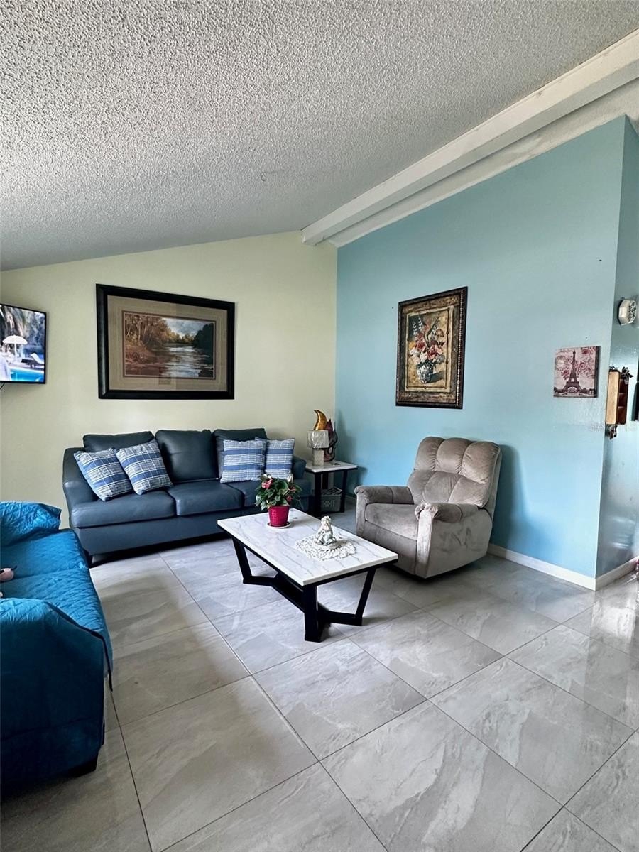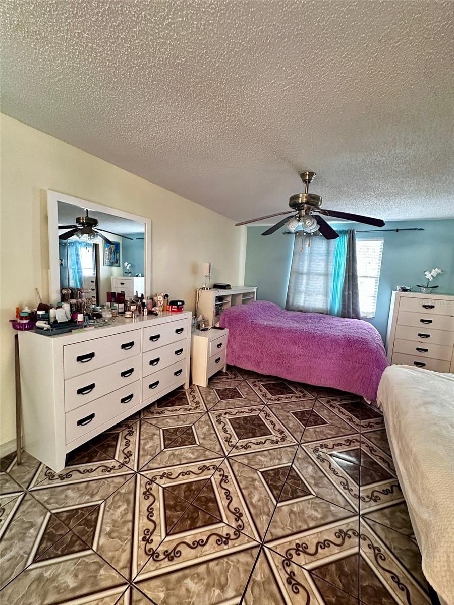 The main home features a large master suite, open living areas, and ceramic tile flooring throughout for easy maintenance.