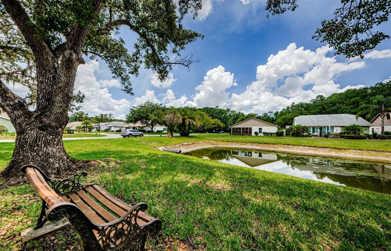 Welcome to carefree Florida living in this move-in ready 2-bedroom, 2-bath, 2-car garage home located in the highly sought-after 55+ community of Summertree in New Port Richey. Featuring a brand-new roof and new A/C, this well-maintained home offers peace of mind and an inviting, spacious layout. Enjoy serene pond views from both the bright Florida room and screened lanai, creating the perfect setting for relaxing mornings or entertaining guests. The heated and cooled Florida room (not included in public square footage) provides valuable additional living space year-round. Inside, you’ll find high ceilings, generous living and dining areas, and a split-bedroom floor plan that offers comfort and privacy. The spacious eat-in kitchen features ample cabinetry and counter space, ideal for everyday living and hosting. Summertree offers resort-style amenities and an active social lifestyle. The newly renovated clubhouse features a billiard room, computer room, library, arts & crafts studio, and an auditorium hosting concerts, dances, bingo, and community events. Residents enjoy a heated pool, spa, fitness center, and a beautifully maintained 9-hole golf course that is golf-cart friendly and surrounded by natural scenery. Additional amenities include tennis, pickleball, bocce, shuffleboard, horseshoes, and Arborwood’s private pool. The HOA covers cable, internet, lawn care, and exterior painting, allowing for truly low-maintenance living. Conveniently located near shopping, dining, medical facilities, and Gulf Coast beaches, this home offers the perfect blend of comfort, convenience, and community.
