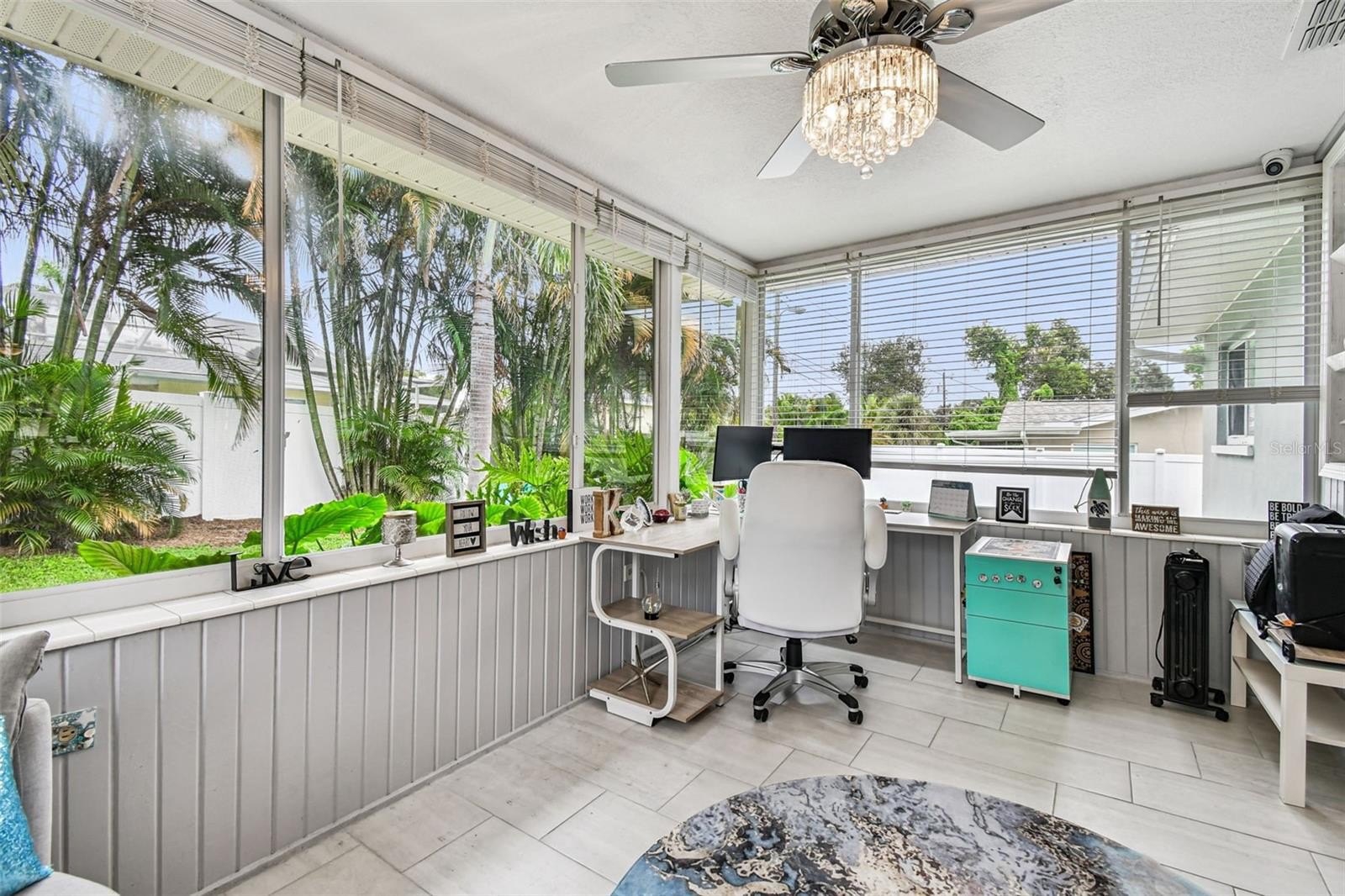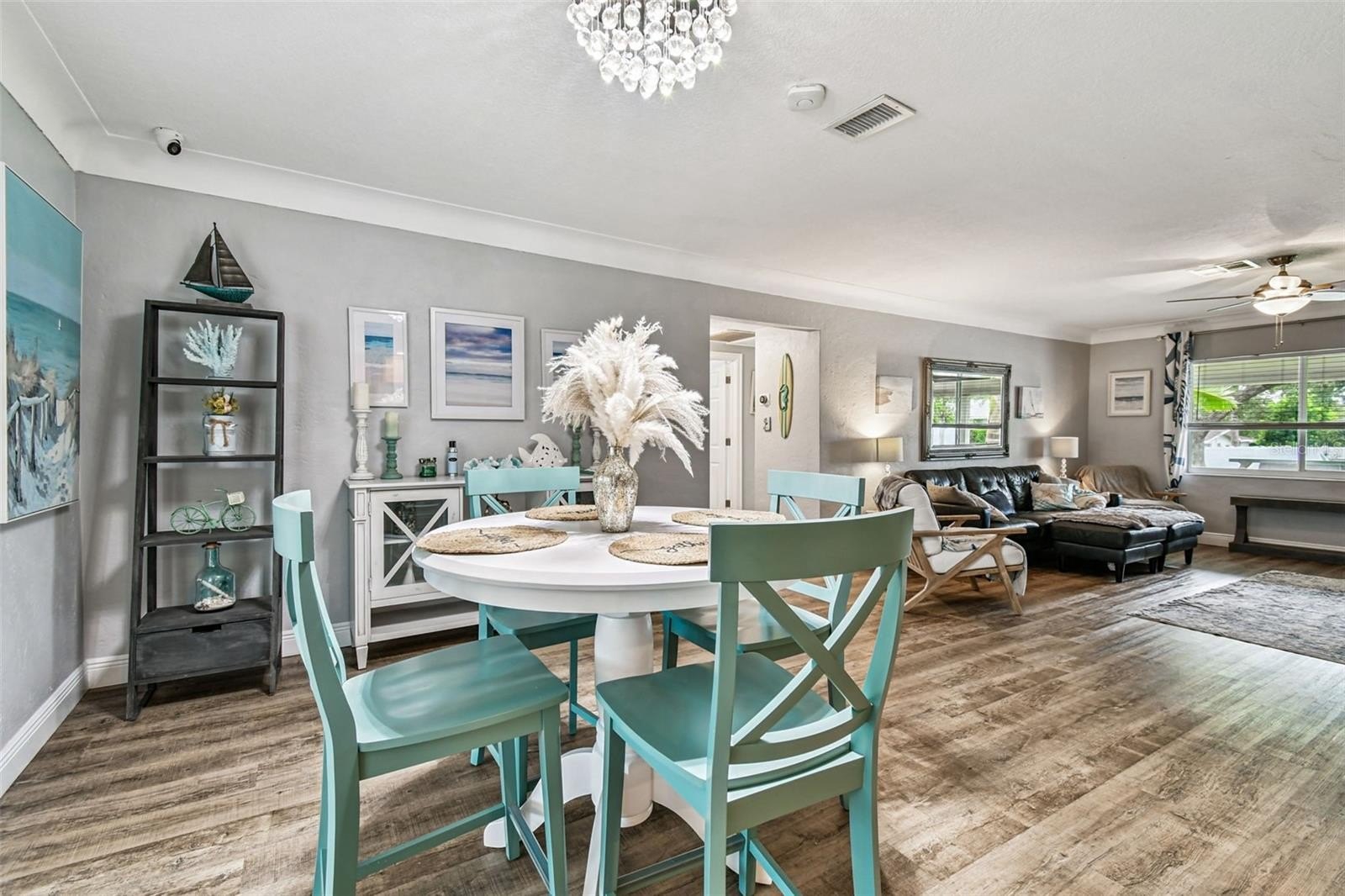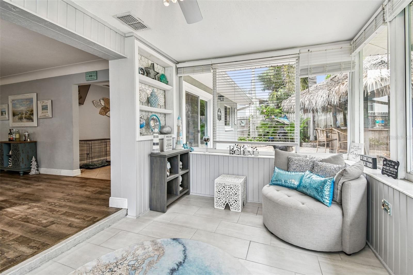 Step inside through the brand-new high-end contemporary front door and be welcomed into a bright, open living and dining area that seamlessly flows into the refreshed Florida Room. This versatile flex space, filled with natural light from wall-to-wall windows, can serve as a guest room, office, playroom, or anything your heart desires.