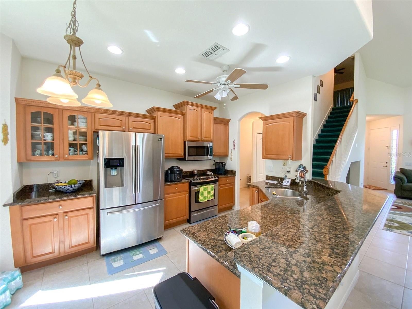 PRICE IMPROVEMENT......Available in the ever-popular Grassy Point Community.... This well-maintained 2-story, 3-bedroom, 2-bathroom home, offering 1,758 sq ft of thoughtfully designed living space, is nestled in lush, mature landscaping. The living room boasts elegant angled ceilings that add an open, airy feel throughout. The kitchen is a culinary haven featuring gleaming granite countertops, custom solid oak cabinets, and updated stainless steel appliances. The primary bedroom serves as a true retreat, offering a spacious walk-in closet and a beautifully appointed en suite bathroom with a double vanity, luxurious garden soaking tub, and a walk-in shower. The upstairs space features an open loft area, perfect for an office, playroom, or TV room, as well as two additional bedrooms and a full bathroom. Further highlights of this home include an indoor laundry room, an attached two-car garage, a sprinkler system supplied with reclaimed water, a 2024 roof replacement, and new windows installed in 2024, as well as exterior painting in 2023, all of which offer peace of mind for years to come. The rear patio overlooks a beautiful conservation area with water and trees to view. Located minutes from the Gulf, the Pinellas Trail, downtown Tarpon Springs & Sponge Docks, shopping, dining, beaches, and more.. This home offers an unmatched lifestyle in one of Tarpon Springs' most desirable neighborhoods!