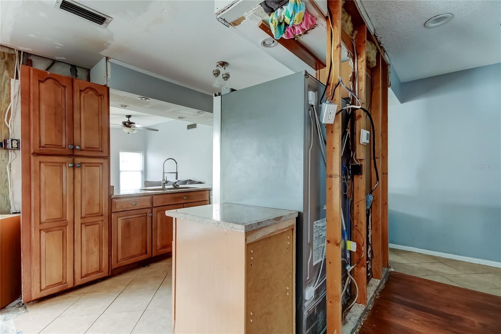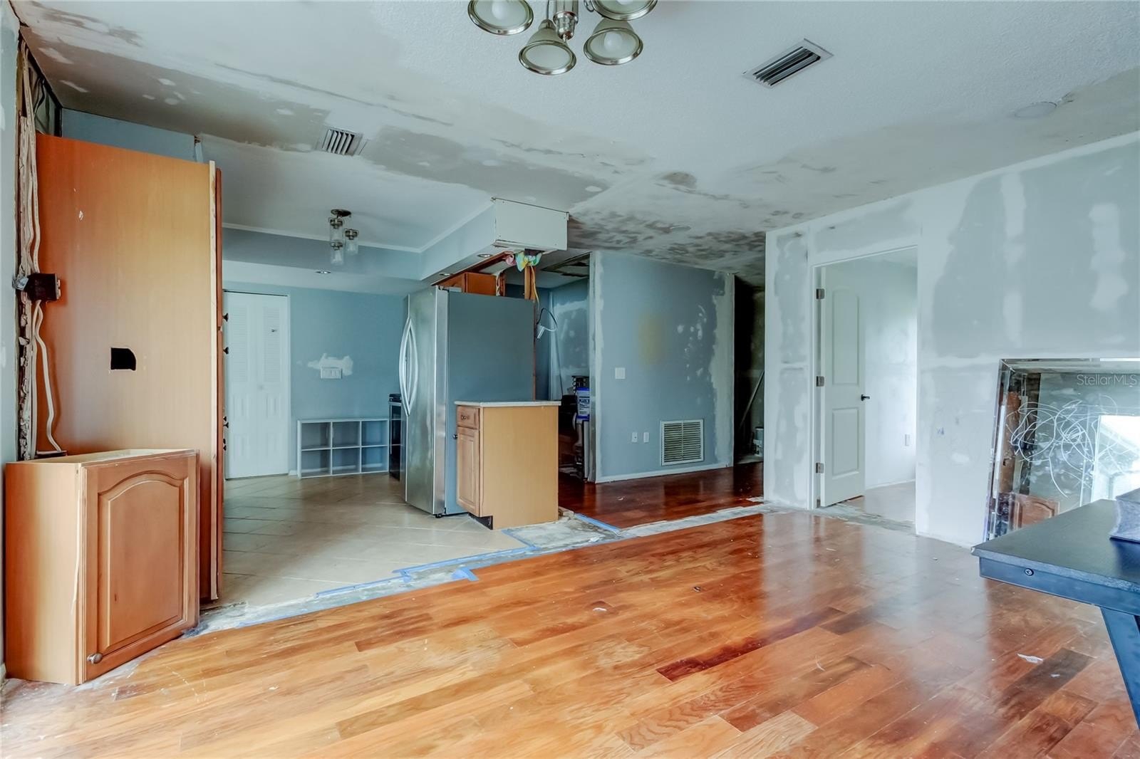 Tucked away on a quiet cul-de-sac, this home is ready for your finishing touches and creative vision. The current owners began a remodel, but the project is unfinished — giving the next buyer a great head start. The kitchen is ready for your dream design, and an additional den or small bedroom has drywall installed, awaiting texture and paint. The open floor plan with a wood-burning fireplace in the great room, the primary suite with walk-in closet and en suite bath, as well as the nicely sized additional two bedrooms, are untouched by the remodel attempt and set the framework for a fabulous home. With an oversized garage, fenced yard, and newer windows and sliders, this home has great bones and character. No mandatory HOA, NO flood zone, NO minimum rental period by the City of Pinellas Park. Easy, affordable, and low-maintenance living at its best!