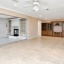 Unique features include motorized remote-control solar shades in the back of the house, plantation shutters for the front, a custom-built wine rack on the sun porch, and a Murphy bed. The living area features a natural gas fireplace with built-in bookcases, creating a cozy and inviting atmosphere.
