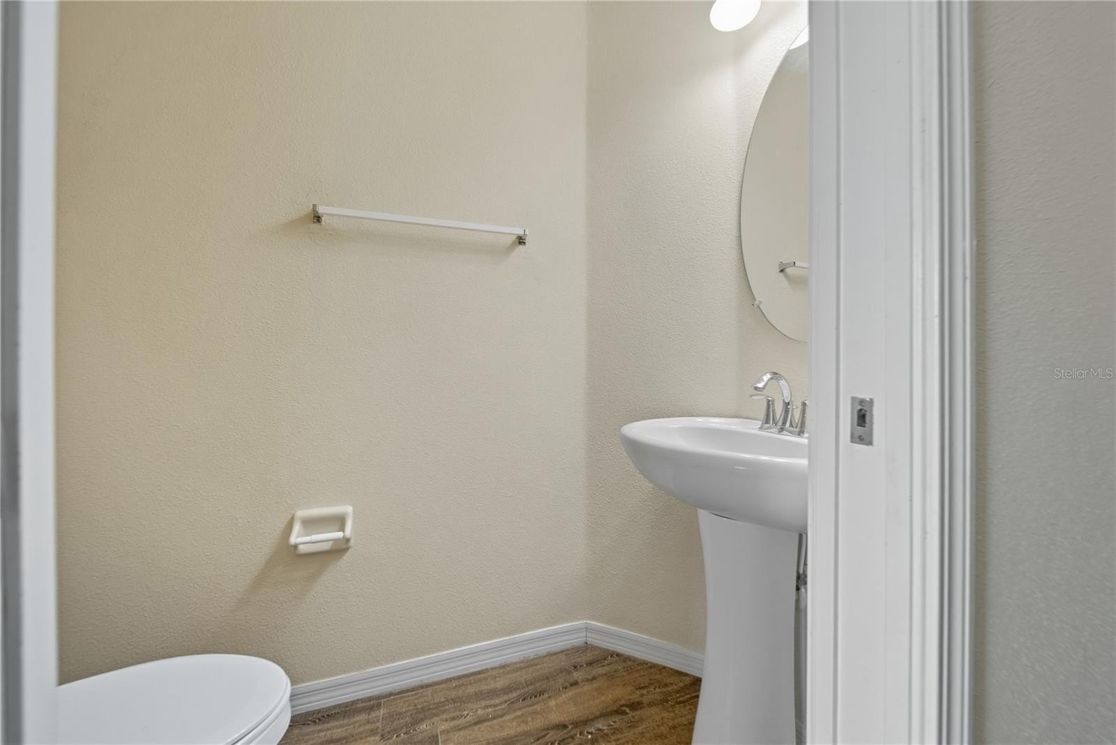 The downstairs flooring upgraded to wood-look ceramic tile. The living room/dining room is ideal for entertaining. Family room has sliding doors emitting extra natural light from the backyard. The large kitchen has stainless steel appliances, granite island, plenty of cabinets and ample granite countertop space. Off from the kitchen is a walk-in pantry and dinette/café for lighter meals, overlooking the spacious and well lit living room. All four bedrooms are located upstairs as well as two full baths, and the laundry room complete with cabinets and hanging space. The owner's suite is spacious and easily accommodates a king sized bed and furniture. The owner's bathroom has dual sinks and vanities, a walk-in closet, walk-in shower, and soaking tub for relaxation. Out back, relax and enjoy the covered porch over looking the large fenced in back yard. For safety and security, home is installed with (currently disabled) home security system consisting of a doorbell camera and alarm system. All ceiling fans and washer/dryer included. Hawks Point community is gated and amenities features a resort-style pool, fitness center, clubhouse, playground, and more! Close proximity and easy access to I-75 to downtown Tampa or Tampa International airport or heading I-75 south outdoor shopping. Set up a private showing today!