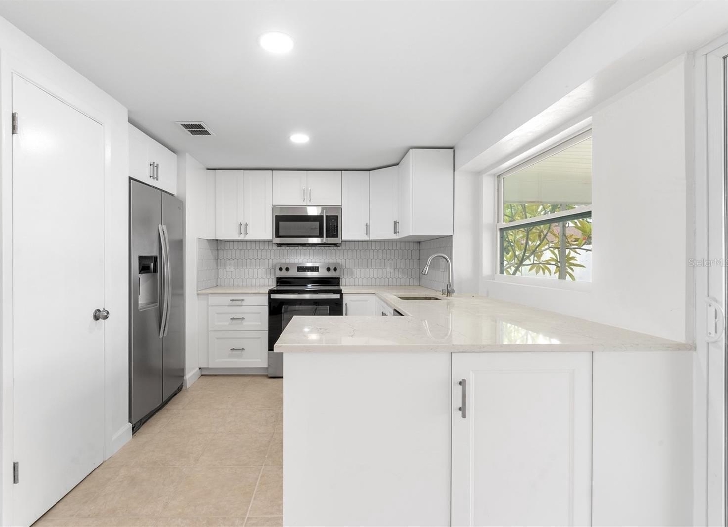 One or more photo(s) has been virtually staged. Welcome to this charming 3-bedroom, 2-bathroom home nestled on a peaceful corner lot with NO HOA or CDD fees! This beautifully updated property features a fully renovated kitchen with quartz countertops, new cabinets, and stainless steel appliances, along with modernized bathrooms for added comfort. Enjoy peace of mind with new hurricane-impact windows, a 3-year-old electrical panel, and gutters for year-round protection. The home offers great outdoor living with a vinyl privacy fence, screened lanai, and 1-car garage. A perfect blend of comfort, style, and practicality—this is Florida living at its finest!
