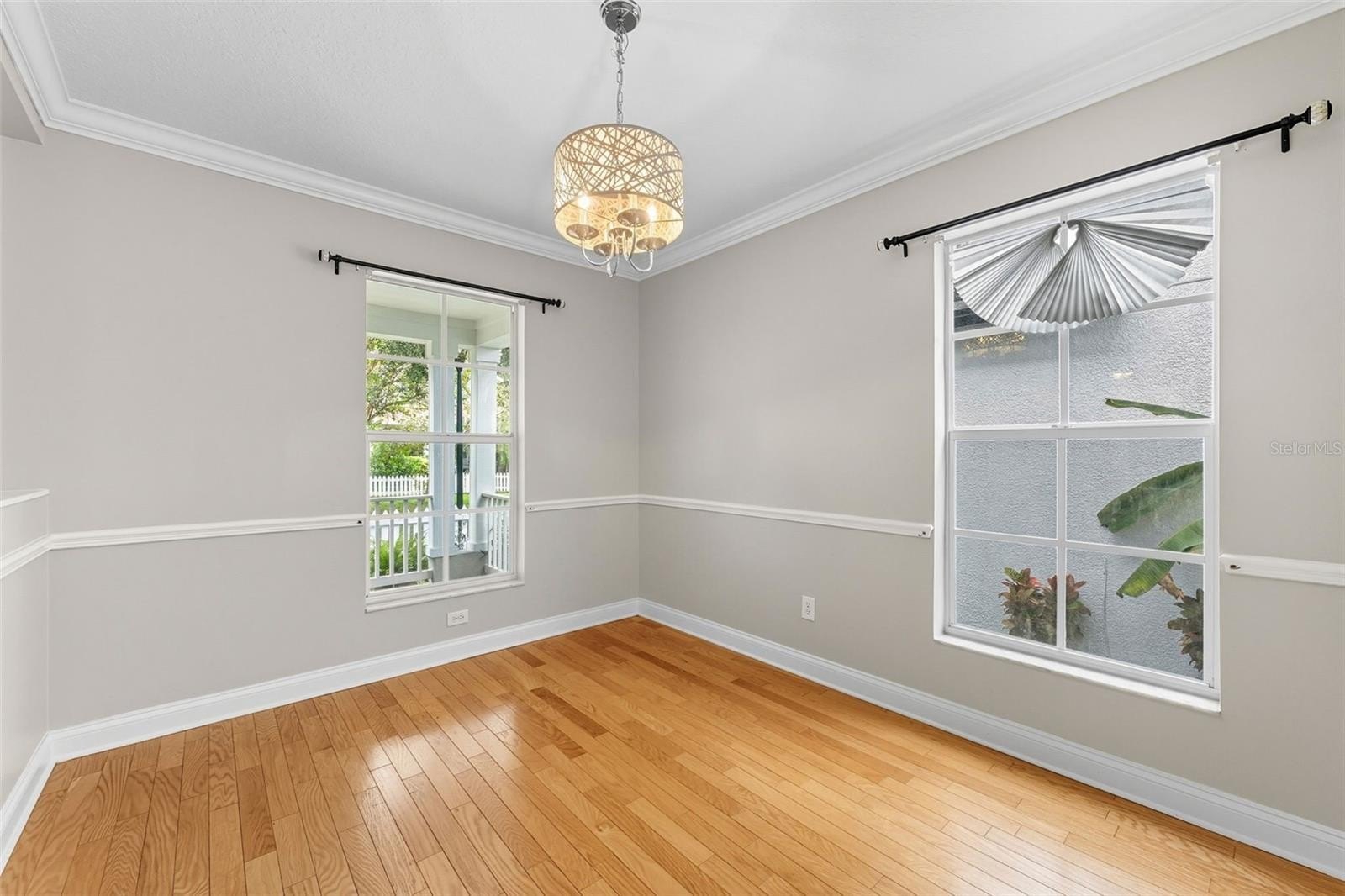 Charming craftsman style home located in the heart of the beautiful Garden District of Fishhawk Ranch. This home has two large welcoming porches one at the front of the home and one at the back. A charming white picket fence, large front paved porch, winding sidewalks and a grassy front courtyard with shade trees all add to the appeal of this lovely home. Enjoy the space you need with 4 bedrooms, 3 bathrooms and a detached 490 sq. ft mother-in-law suite above the 2-car garage. Entering through the front door you notice the bright and open feeling of the home. To your left is the dining room and to the right a home office space, both are flooded with the light and have gorgeous hardwood flooring. The kitchen and family room have and open floor plan and provide the perfect area for family and friends to enjoy spending time together. The kitchen features stainless steel appliances, Corian counter tops, white cabinets with trim, large double sink, flush mounted lighting, spacious walk-in pantry and an eat-in breakfast nook with designer lighting. The downstairs also includes designer niches, a half bath and laundry room with shelving. The second floor is where you find the primary suite, this room is flooded with natural light and views of the tree tops. The primary suite bath includes a huge