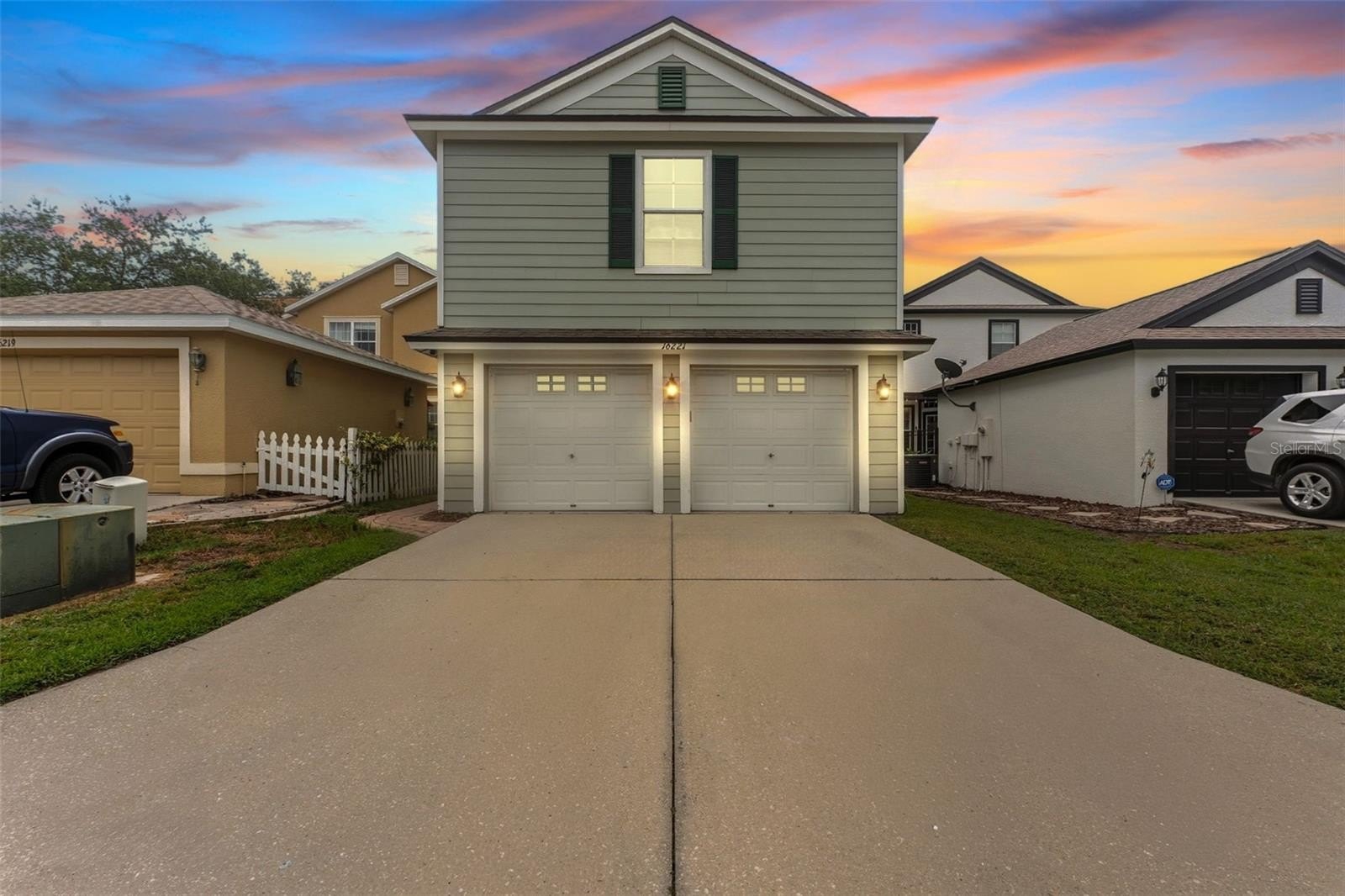 walk-in closet with shelving, separate linen closet, dual sinks, soaking tub, walk-in shower and private water closet. Two additional bedrooms are located upstairs along with another full bathroom. The large paved back patio is perfect for afternoon grilling and entertaining. The porch area gets so much light that it is a great place to grow gorgeous potted plants and flowers. The over the garage detached living suite includes a FULL KITCHEN, full bathroom with HUGE closet, living space and private bedroom. This space is perfect for family, guests, college age kids or can be a rental on a 12-month lease. There are many amazing possibilities that will make this space work for your family. This charming home has had the interior freshly painted and has all new carpet in all the bedrooms and stairwell. Enjoy being close to everything Fishhawk has to offer, this home is within walking distance to the resort style pool, gym, splash pad, covered playground, park square, Glenn Cross park, the Palmetto Club and over 20 miles of walking and bike riding trails. Located in the A- rated Fishhawk Creek Elementary school district as well as Randall and Newsome Hight School. Community amenities also offer a skate park, tennis courts, basketball courts, outdoor hockey rink and multiple parks, dog parks and pools. Located a short distance from shopping, restaurants, medical offices, soccer and baseball fields. This lovely home is nestled in a sought-after resort style community and minutes from Tampa Bay and beautiful beaches. This is definitely one you don’t want to miss!