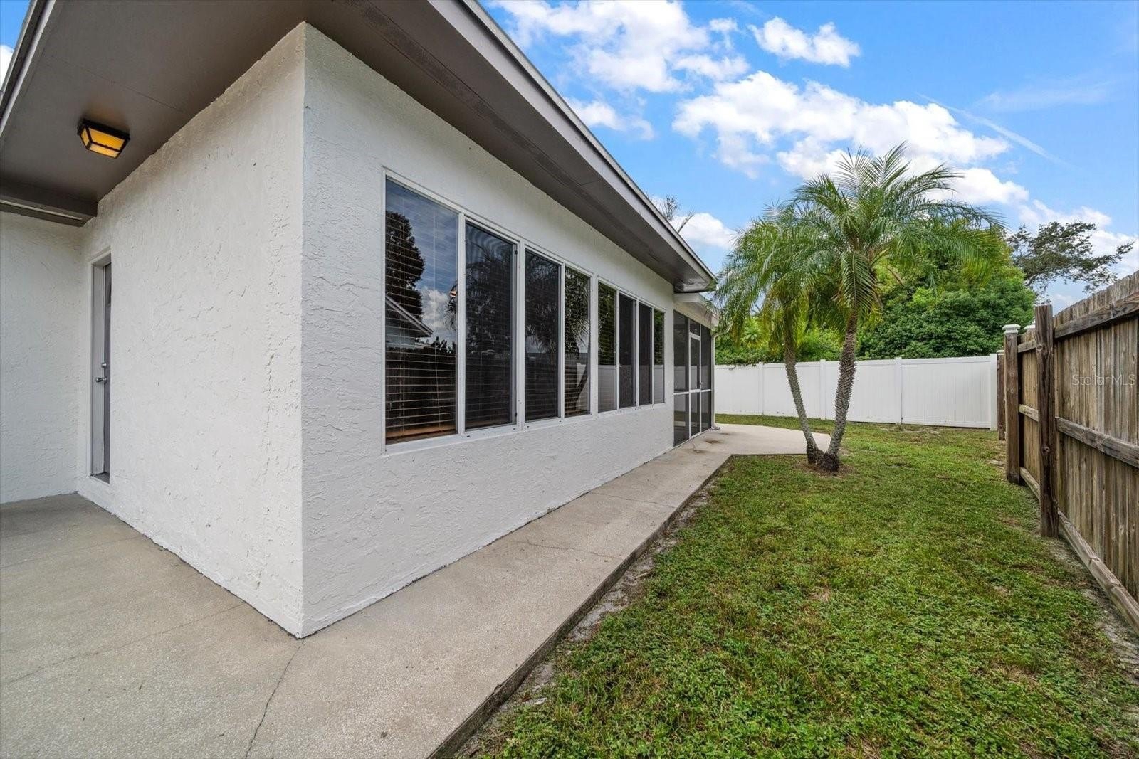 The outdoor living area is designed for gatherings and Florida-style entertaining, with a large, fenced yard, expansive patio, and screened, covered porch that’s ideal for a spa. Dual gates on either side of the home make storing a boat, jet skis, or other toys a breeze, while the privacy fence creates a secure environment for pets and play.
