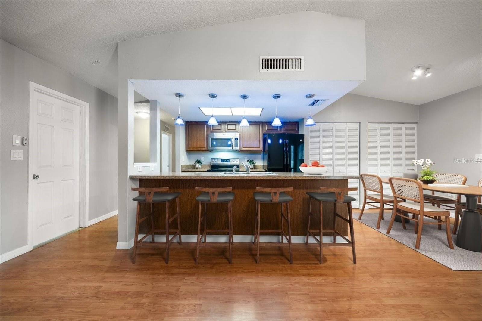Welcome to this delightful single-family home tucked away in the heart of Palm Harbor’s highly desirable Beacon Groves subdivision. Perfectly positioned on a spacious corner lot, this 3-bedroom, 2-bath property includes a versatile bonus room that can serve as a 4th bedroom, office, or studio—adding flexibility for today’s lifestyle. With no HOA, no flood insurance required (86’ above sea level), and an unbeatable location in one of Pinellas County’s most sought-after communities, this home truly stands out. BRAND NEW FLAT ROOFS completed 10/6/25 by Albright Family Roofing, permit #EBP-25-19334. From the moment you arrive, the curb appeal is undeniable. A charming front courtyard creates a warm welcome and offers the perfect spot to enjoy a quiet morning coffee or evening relaxation. Inside, you’ll find an inviting open-concept floor plan designed for both comfort and entertaining. The kitchen features a breakfast bar with seating, and a large pantry closet, seamlessly connecting to the dining area and a generously sized living room with vaulted ceilings. A wood-burning fireplace adds cozy character, while the adjoining family room provides additional space and opens directly to the backyard.