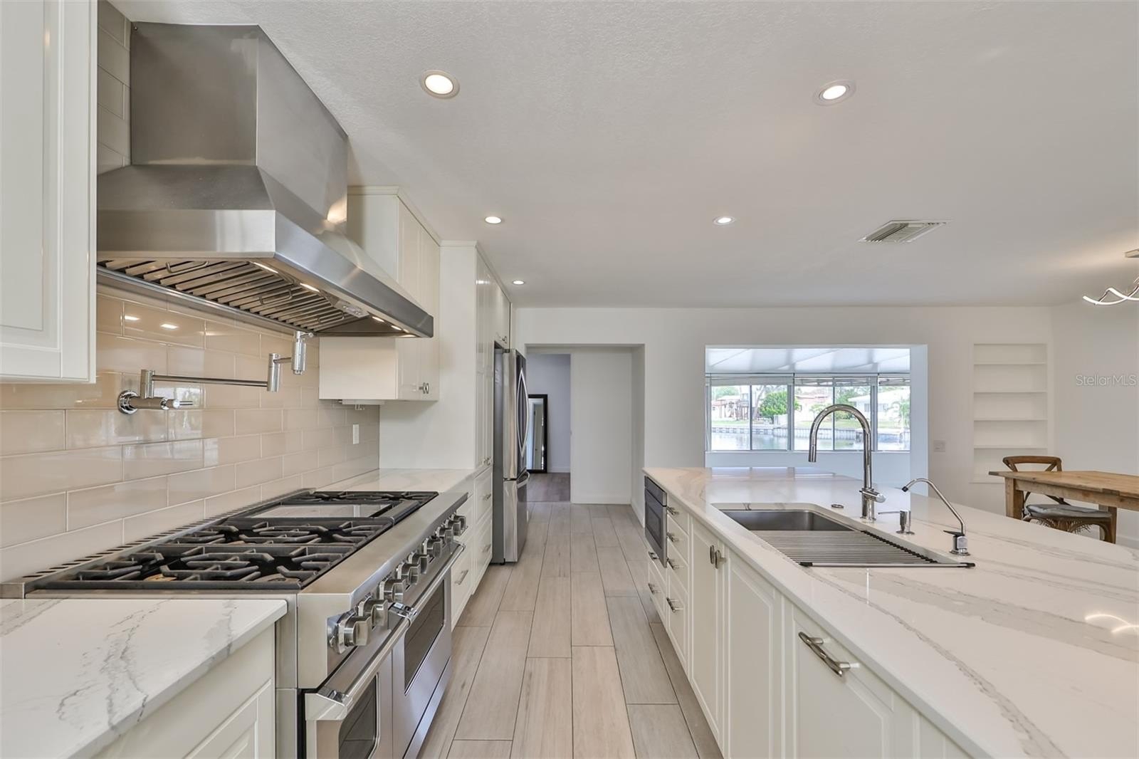 Quiet-Luxury Waterfront! Nature, Lifestyle & Gulf Access! Discover an impeccably renovated 3 by 3-waterfront residence blending refined design with intimate coastal living. New roof, windows, paint, flooring, and a chef’s kitchen with gas range, dual sinks, and an oversized quartz island. The master suite is a retreat with a brand-new stylish spa bath, private outdoor access, and serene water views.