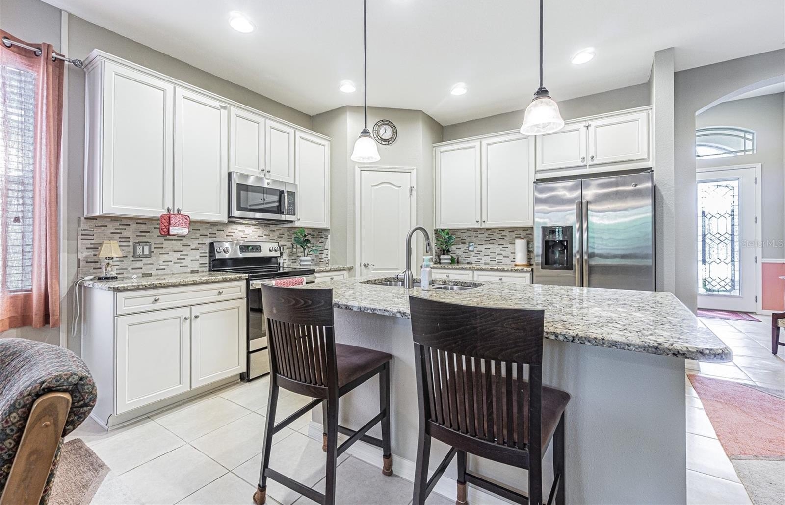 PRICE IMPROVEMENT!! Gorgeous 2016 Pembroke model available now. This totally updated 1,732-square-foot home is 100% move-in ready. Four-bedroom, two-bath home with everything you're looking for in a home in the amazing Tampa Bay Golf and Country Club community. Beautiful tile throughout much of the home, also premium luxury vinyl and lush carpet in two of the guest bedrooms. Solid wood, modern white cabinets throughout the home, and incredible granite. The primary bathroom features a dual-sink high-top vanity, a beautiful walk-in shower, and much more. The laundry room features a brand-new, top-of-the-line washer and dryer. The front bedroom, previously used as an office, features French doors, premium luxury vinyl flooring, and a built-in closet. TBG&CC has two incredible golf courses, the 18-hole Championship course and a 9-hole executive course. The golf courses here are impeccable and very well-maintained. Tampa Bay Golf & Country Club is Tampa Bay's premier active 55+ community, featuring two swimming pools (the large resort-style pool has fountains and is heated to a balmy 80 degrees).
