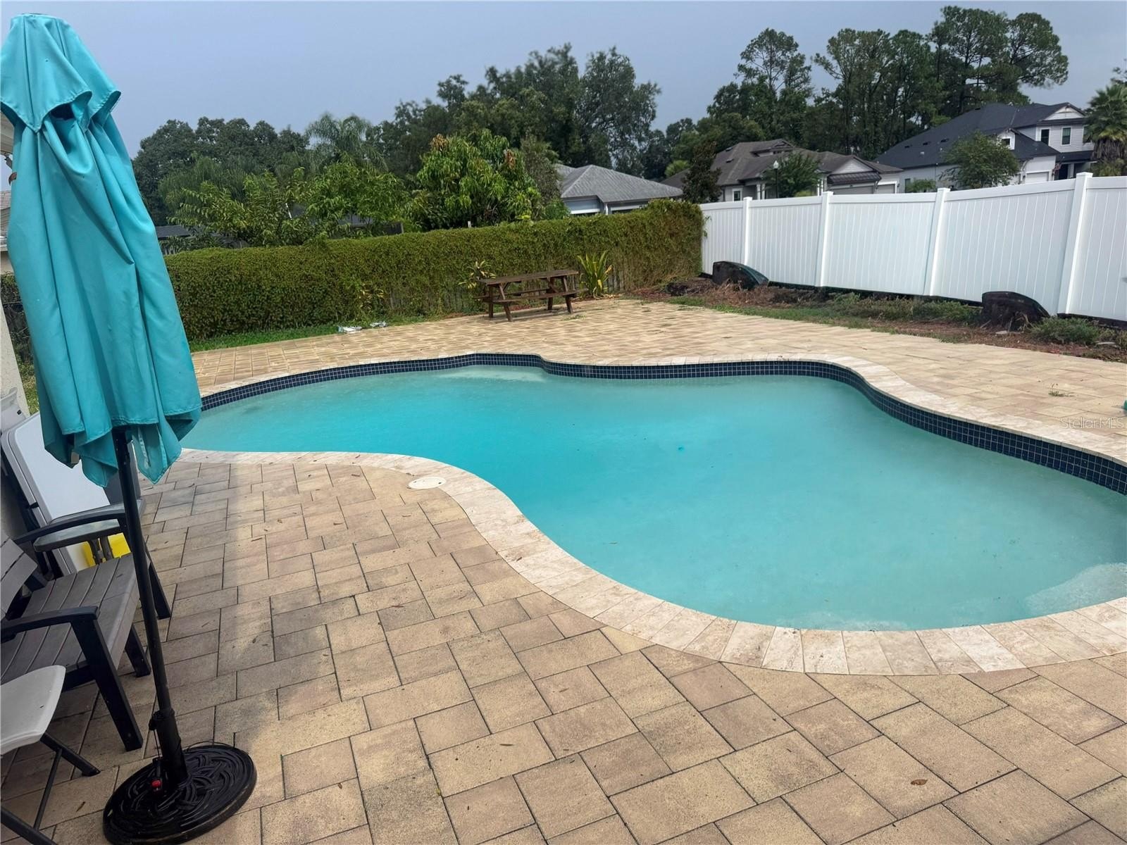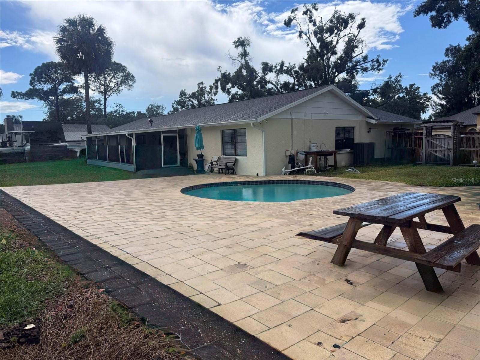 Step outside to enjoy the Florida lifestyle in your screened-in patio overlooking a sparkling PebbleTec pool, surrounded by paver decking—perfect for relaxing or entertaining. Additionally, there’s an extra parking pad in the front with a private gated entrance that leads to the fully fenced backyard—ideal for storing a boat, RV, or additional vehicles. Other features include a 2-car garage, large interior laundry room, 15 SEER A/C unit (2019), and pool pump (2021).