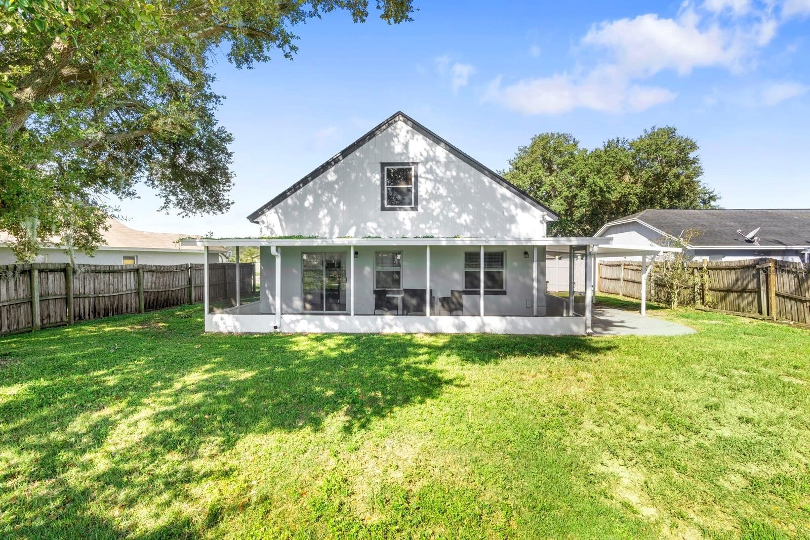 Enjoy outdoor living with a screened-in back patio overlooking a large backyard, ideal for gatherings, gardening, or play. Pet owners will love the dog washing station, while the two-car garage and under-stairs storage provide plenty of room to stay organized.