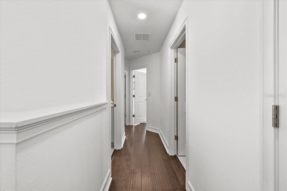 The open concept kitchen, dining, and living areas make entertaining effortless, while upstairs bedrooms feature spacious walk-in closets and a dedicated laundry suite for convenience. Bathrooms throughout the home have been transformed into design statements—each with its own personality, from sophisticated textures to rainforest-inspired wallpaper.