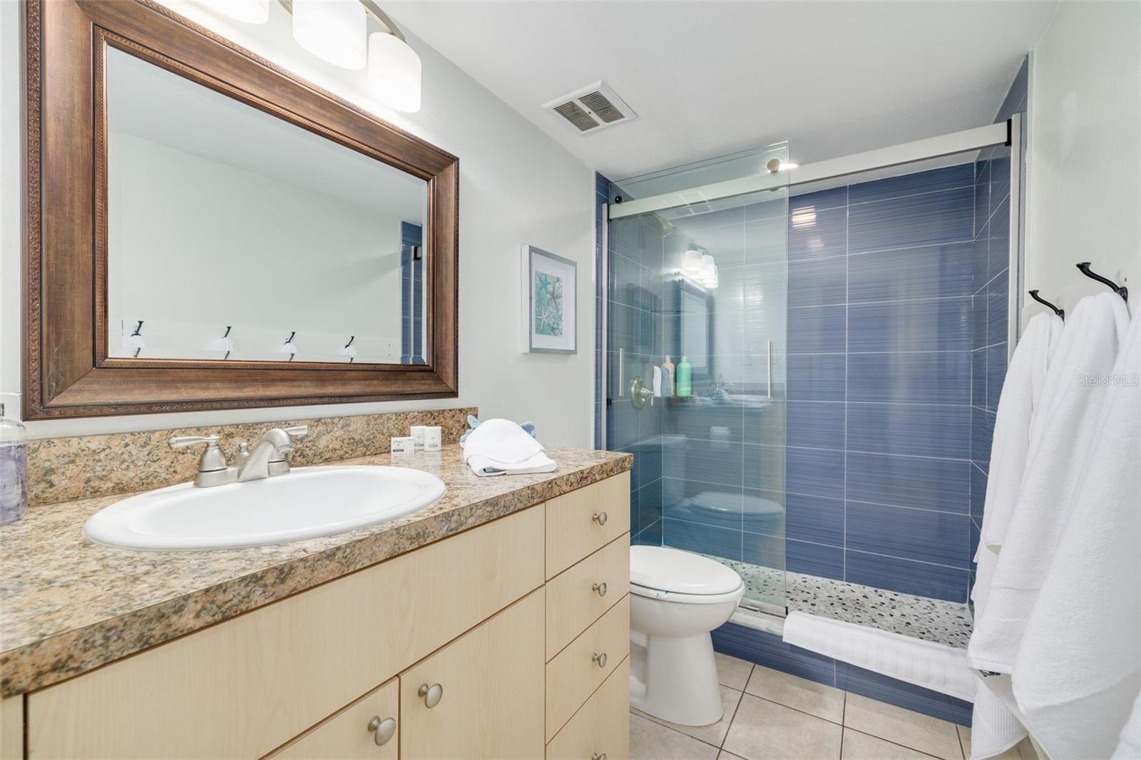 The primary suite includes an en suite bath, while the guest bedroom and second full bath welcome family and friends. Corner-unit perks mean extra windows, added privacy, and abundant natural light.