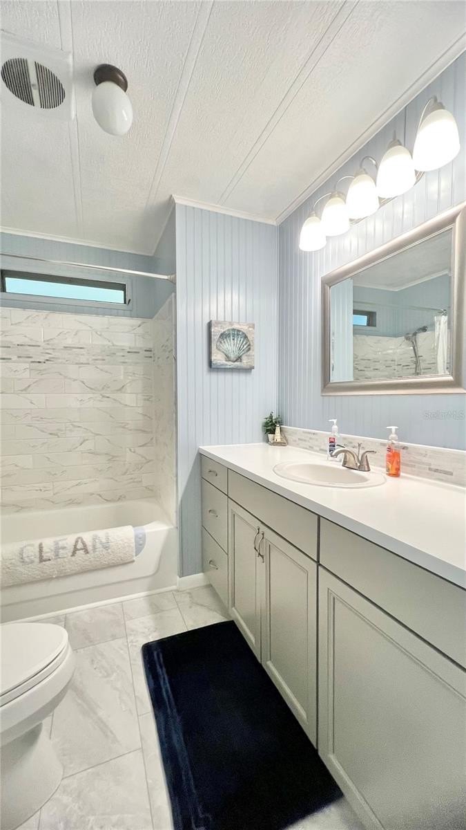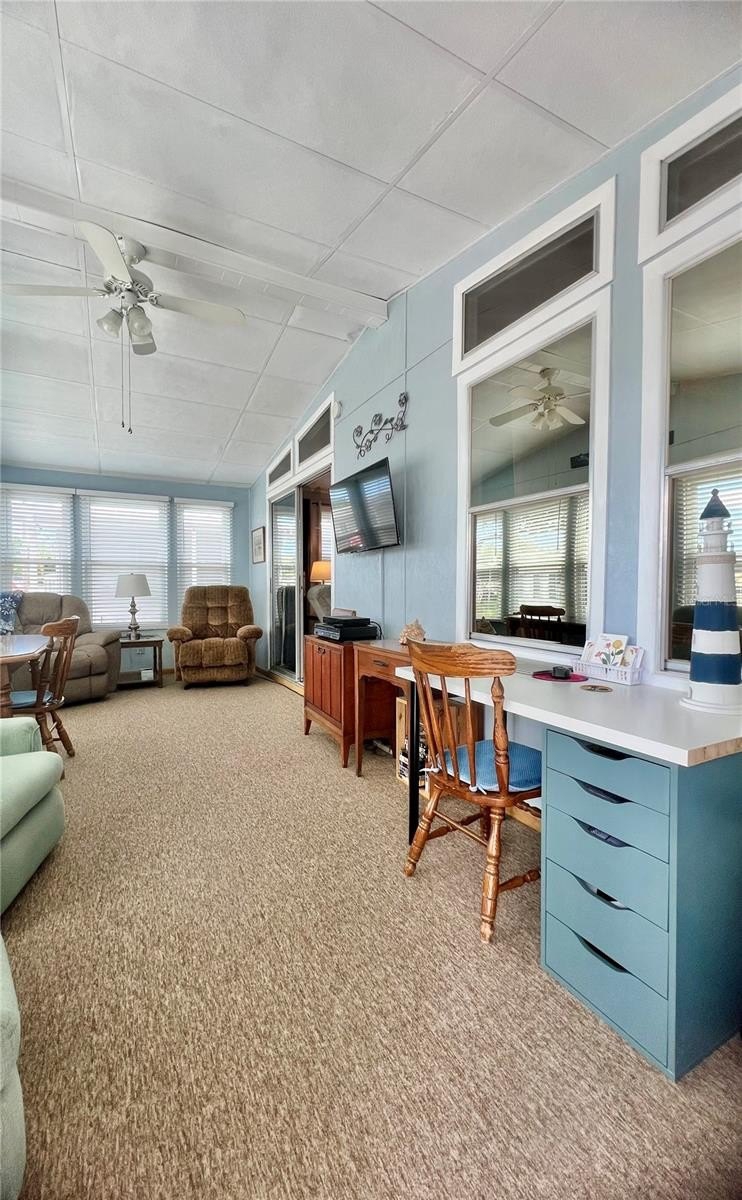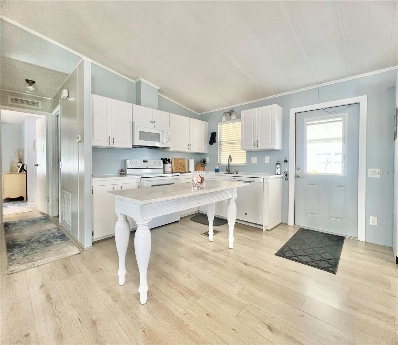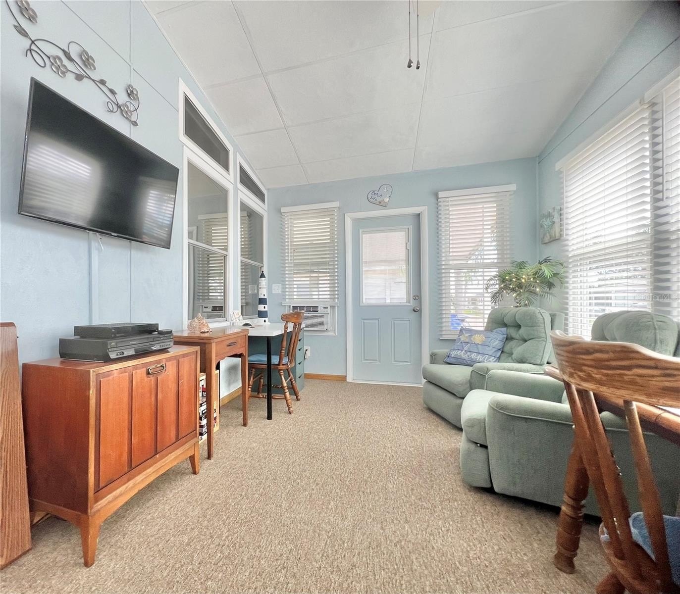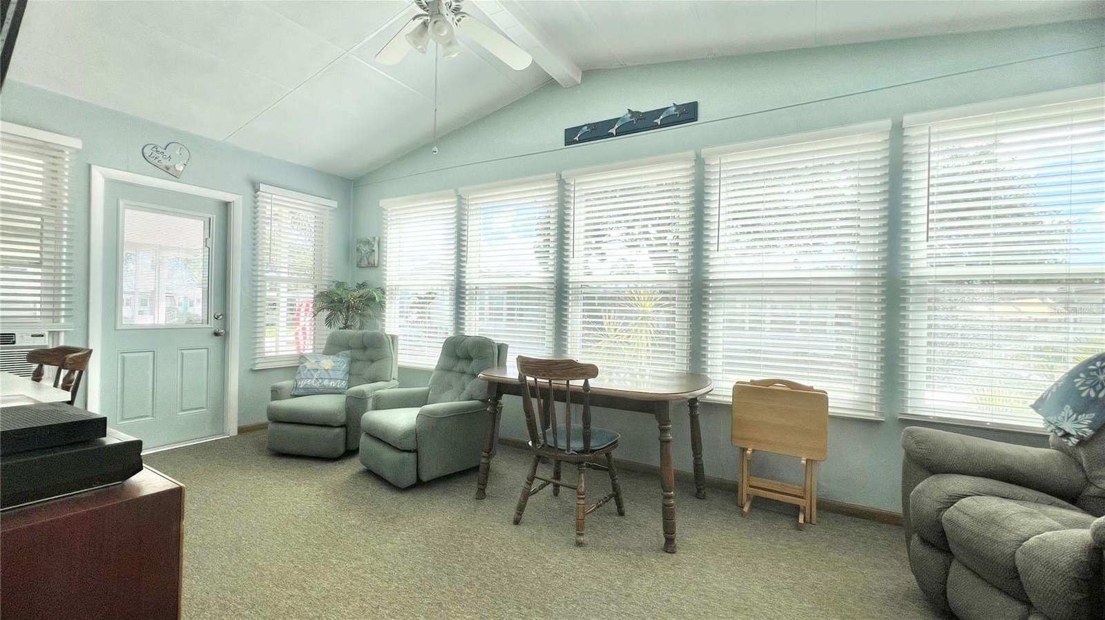 This stunning, partically furnished residence offers an inviting open layout connecting the living room, dining area, and kitchen under soaring cathedral ceilings. Freshly painted throughout, the home is bright, cheerful, and move-in ready. Newer luxury vinyl plank flooring adds a touch of modern elegance in every room except the bathrooms and the light-filled Florida Room, which features its own cathedral ceiling and provides a serene space to unwind. While not included in the official square footage, this Florida Room adds 200 sq ft of valuable bonus living space. Thoughtful updates throughout the home enhance both comfort and style. Both entry doors have been replaced and have built-in blinds between the glass for added privacy and ease. The spacious primary bedroom includes a walk-in closet and a private en suite with a walk-in shower. The beautifully remodeled main bathroom showcases a new tub with ceramic tile surround, updated beadboard, new flooring, and a stylish vanity that adds to the home's charm. Enjoy your morning coffee or evening read in the private screened room behind the shed—a peaceful retreat all your own. Practical upgrades include a new vapor barrier installed in 2022, a newer A/C unit (2018), and a roof-over with double-pane replacement windows, enhancing the home's quiet, energy-efficient appeal. Fairway Village is not just a place to live—it’s a lifestyle. Residents can enjoy access to the private 9-hole, par-3 golf course with two lakefront fairways and a putting green, a scenic 5-acre lake for catch-and-release fishing, two pools and hot tubs, and eight covered shuffleboard courts. The newly opened 19,000+ sq. ft. clubhouse (opened January 2022) offers a 700-seat auditorium and ballroom, a commercial kitchen, performance stage, fitness center, library, card and billiard rooms, cozy lounges, and free community-wide Wi-Fi. With a full calendar of over 50 social events each year, it's easy to feel connected and part of something special. The 2025 monthly maintenance fee of $401.00 includes water, sewer, high-speed internet, over 220 Spectrum TV channels, lawn care, lawn pest control, and curbside trash pickup—making this home as practical as it is beautiful. Optional unlimited golf membership is available for just $440/year + tax (residents/renters only). If you're seeking a spacious, thoughtfully updated home in a welcoming, resort-style 55+ community that truly feels like family—this is the one you've been waiting for.