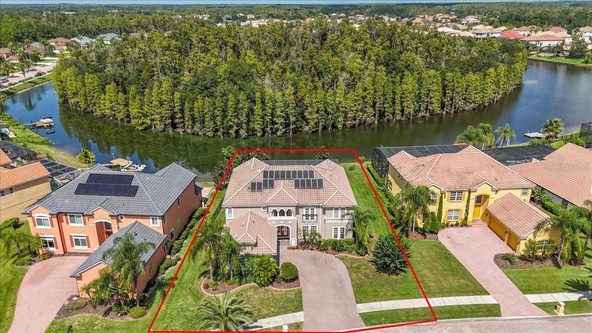 Stunning lakefront home in the resort-style community of Cory Lake Isles! This luxury home with direct lake access and breathtaking water views, features 6 bedrooms, 4.5 baths, a soaring two-story family room with crystal chandelier, travertine floors, formal dining with wood floors, and a gourmet kitchen with granite countertops, Whirlpool appliances, and pull-out drawers. The first floor primary suite features wood floors, jacuzzi tub, double vanities, and a custom walk-in closet. Upstairs offers four bedrooms, a loft, and a large media room leading to a screened Trex deck overlooking the lake. Heated pool and spa, plus an oversized 2-car garage with ample storage and polyaspartic coating. There is also an additional bedroom on the main floor of the home that is currently used as a study. Cory Lake Isles offers tennis courts, a fitness center, and a community pool, located close to shopping, dining, and parks. Exterior painting of the home was just completed and comes with a 5 year labor and materials warranty. There are 3 AC Units, 5 ton installed in 2021, 2.5 ton installed in 2017 and 1.5 ton is original. Water Heater is Gas.