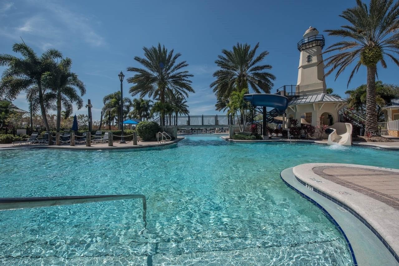 Located in the maintenance-free Bay Breeze section of MiraBay, HOA fees include landscaping, irrigation, and interior water. Residents enjoy resort-style amenities: a clubhouse with café, fitness center, spa, resort pool with slide and swim lanes, tennis courts, fishing pier, and kayak/canoe access to Tampa Bay through the scenic lagoon.
