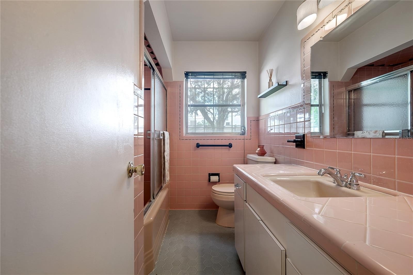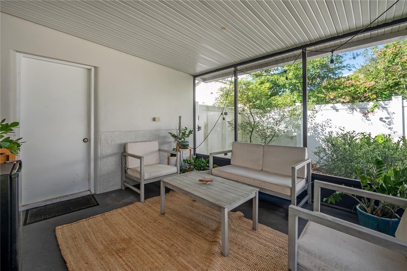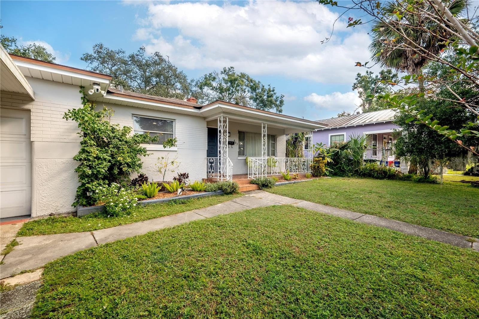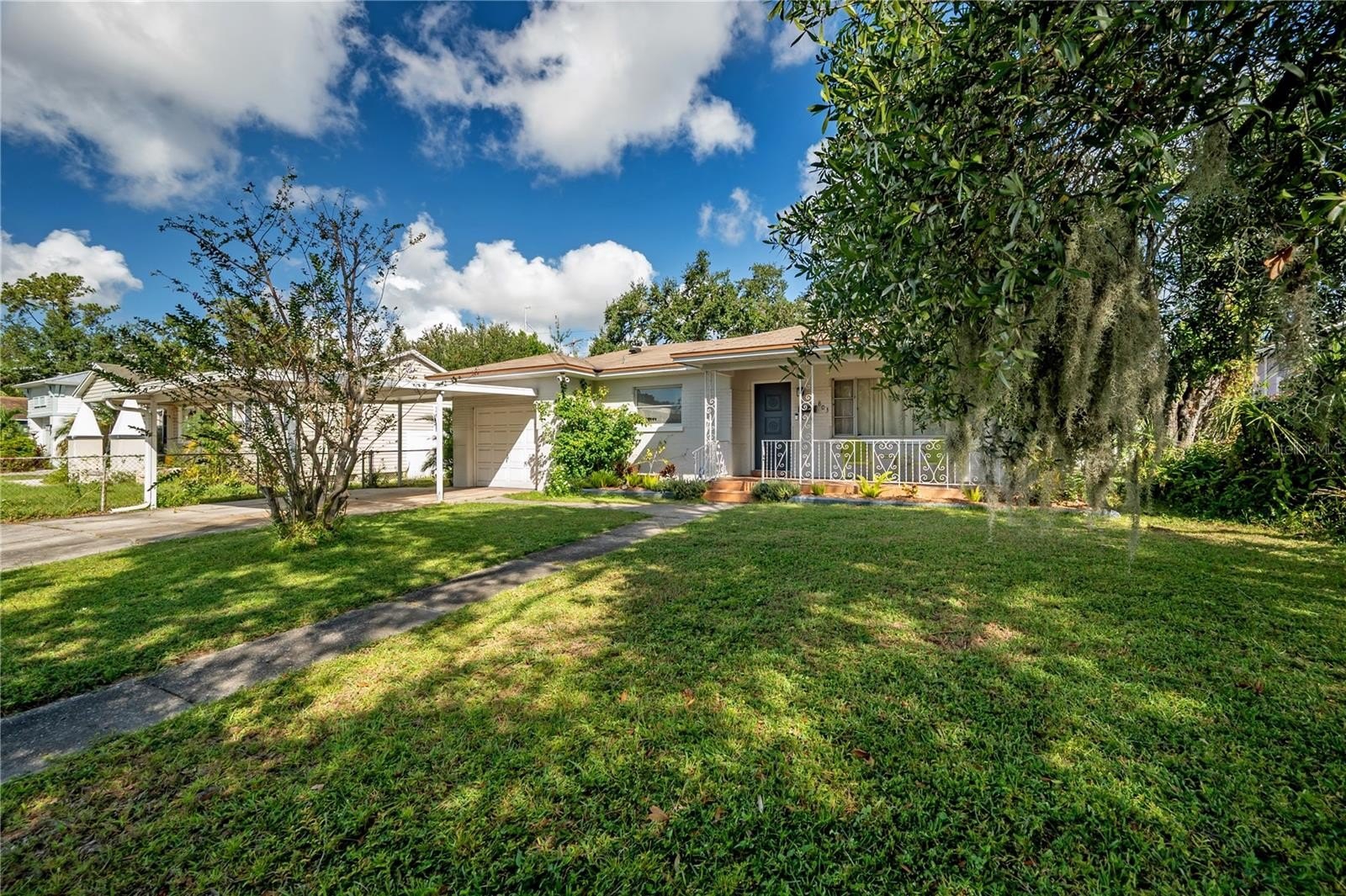 The BEST priced home on the market in Riverside Heights! Welcome to The “Pretty in Pink” Cottage, where 1950s Riverside Heights charm meets 2025 comforts. Too often when someone renovates a historic home, they strip away all the character that made it special when it was first built. Not this one, which seamlessly blends the old and charming with the new and shiny. Built in 1957, this block-constructed Riverside Heights cottage has been thoughtfully updated to meet today’s lifestyle while preserving the timeless charm that makes mid-century homes so beloved. From the moment you arrive, you’ll fall for its mosaic terrazzo-tiled front porch and the brick-lined streets that set the scene for a true Heights classic. Once inside, you’ll find treasures from 1957 still beautifully intact—like the adorable telephone nook (remember when there was just one landline for the whole family to share?), watermelon terrazzo flooring in the bedrooms, and the “Pretty in Pink” guest bathroom with original vintage tile that would be a crime to replace. The living room is bright, cozy, and inviting, anchored by a charming picture window that allows soft natural light to flood the space—one of those simple, beautiful features that make these mid-century homes so special. While many 1950s cottages weren’t built with en suite bathrooms, this one has been thoughtfully reimagined to include a cozy primary suite with its own private bathroom with a walk-in shower and a spacious reach-in closet complemented by original built-in shelving and drawers that are as charming as they are functional. The updates continue throughout, with updated interior and exterior paint, new light fixtures throughout the home, and a renovated kitchen featuring white shaker cabinetry, an oversized island that doubles as a dining table, stone countertops, wood floating shelves, a stainless steel vent hood and dishwasher, undermount sink, brushed nickel hardware, stainless steel French door refrigerator, and a large-format subway tile backsplash. The kitchen tastefully blends timeless trends of yesteryear with tasteful design styles of today. The main living areas flow effortlessly with wood tile flooring, creating a feeling of warmth and cohesion. Set on a spacious 7,800 sqft lot, the backyard offers endless potential—with a screened lanai, garden beds, fire pit, and plenty of room to add a pool or design your dream outdoor retreat. It’s also fully fenced with white vinyl fencing, providing both privacy and curb appeal. A rare one-car garage plus carport adds extra convenience, storage, and laundry.