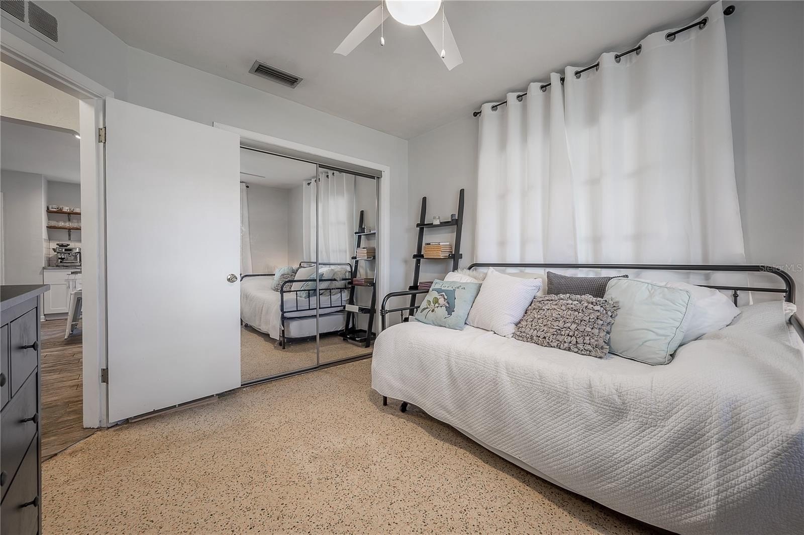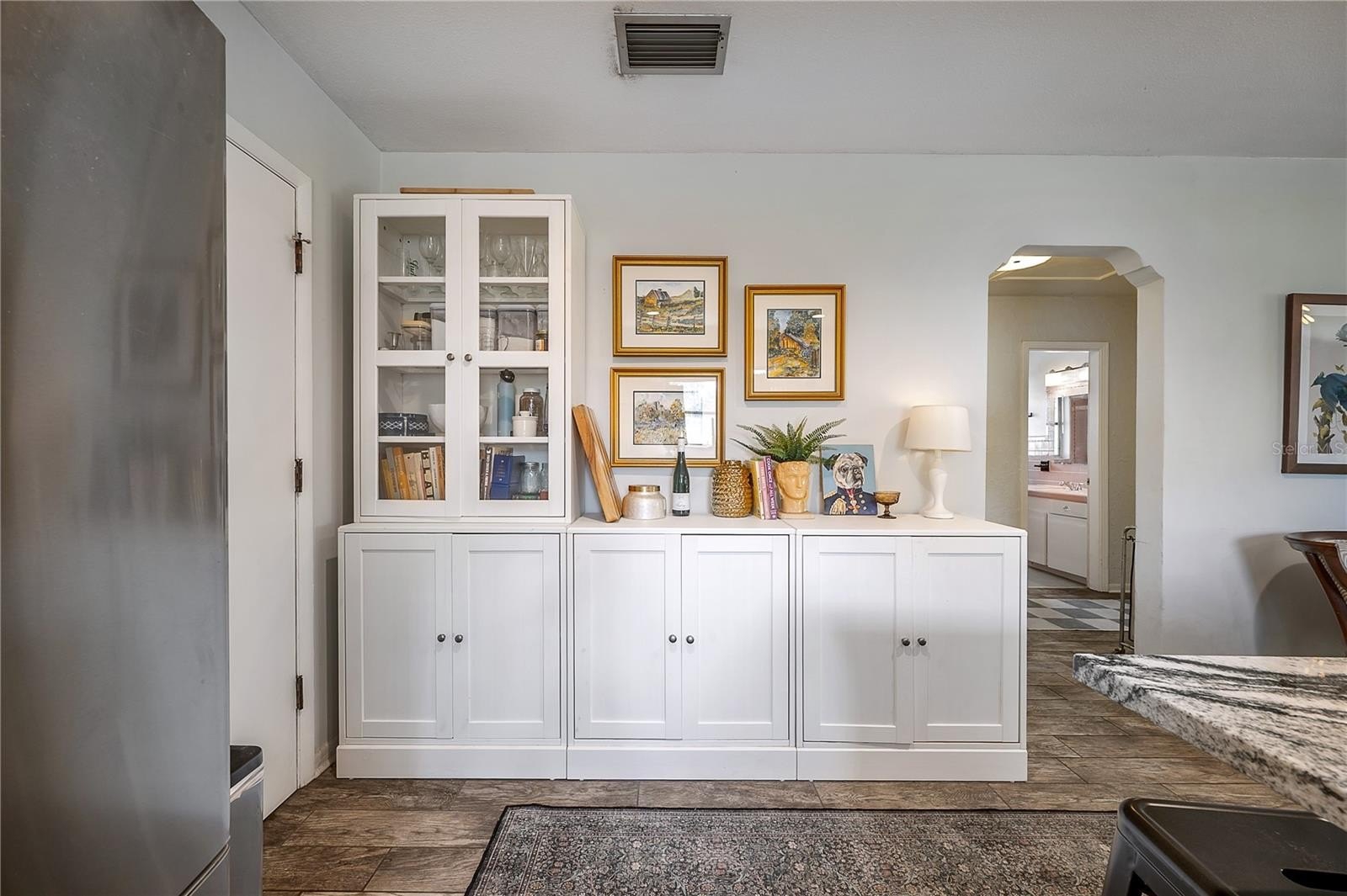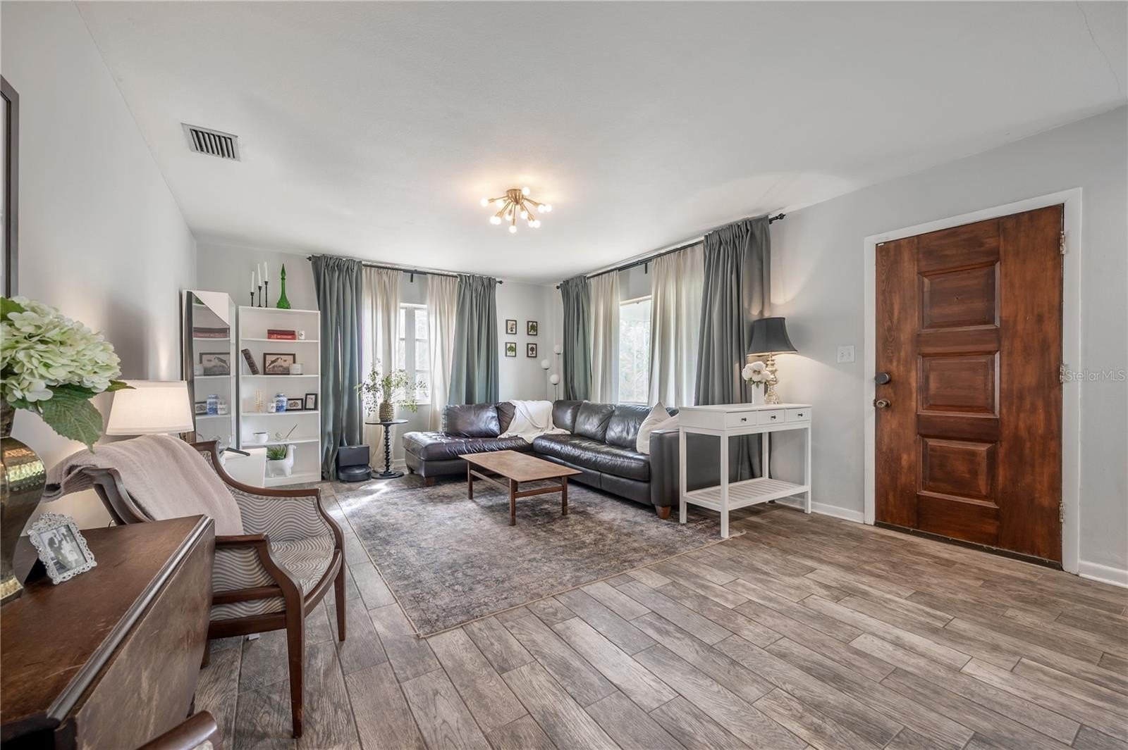 The BEST priced home on the market in Riverside Heights! Welcome to The “Pretty in Pink” Cottage, where 1950s Riverside Heights charm meets 2025 comforts. Too often when someone renovates a historic home, they strip away all the character that made it special when it was first built. Not this one, which seamlessly blends the old and charming with the new and shiny. Built in 1957, this block-constructed Riverside Heights cottage has been thoughtfully updated to meet today’s lifestyle while preserving the timeless charm that makes mid-century homes so beloved. From the moment you arrive, you’ll fall for its mosaic terrazzo-tiled front porch and the brick-lined streets that set the scene for a true Heights classic. Once inside, you’ll find treasures from 1957 still beautifully intact—like the adorable telephone nook (remember when there was just one landline for the whole family to share?), watermelon terrazzo flooring in the bedrooms, and the “Pretty in Pink” guest bathroom with original vintage tile that would be a crime to replace. The living room is bright, cozy, and inviting, anchored by a charming picture window that allows soft natural light to flood the space—one of those simple, beautiful features that make these mid-century homes so special. While many 1950s cottages weren’t built with en suite bathrooms, this one has been thoughtfully reimagined to include a cozy primary suite with its own private bathroom with a walk-in shower and a spacious reach-in closet complemented by original built-in shelving and drawers that are as charming as they are functional. The updates continue throughout, with updated interior and exterior paint, new light fixtures throughout the home, and a renovated kitchen featuring white shaker cabinetry, an oversized island that doubles as a dining table, stone countertops, wood floating shelves, a stainless steel vent hood and dishwasher, undermount sink, brushed nickel hardware, stainless steel French door refrigerator, and a large-format subway tile backsplash. The kitchen tastefully blends timeless trends of yesteryear with tasteful design styles of today. The main living areas flow effortlessly with wood tile flooring, creating a feeling of warmth and cohesion. Set on a spacious 7,800 sqft lot, the backyard offers endless potential—with a screened lanai, garden beds, fire pit, and plenty of room to add a pool or design your dream outdoor retreat. It’s also fully fenced with white vinyl fencing, providing both privacy and curb appeal. A rare one-car garage plus carport adds extra convenience, storage, and laundry.