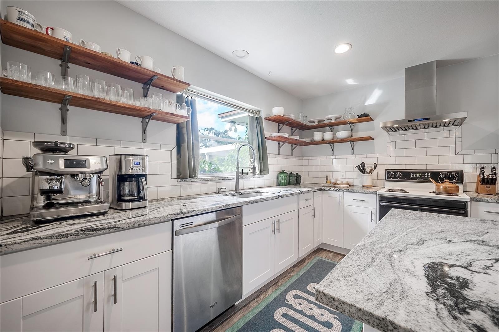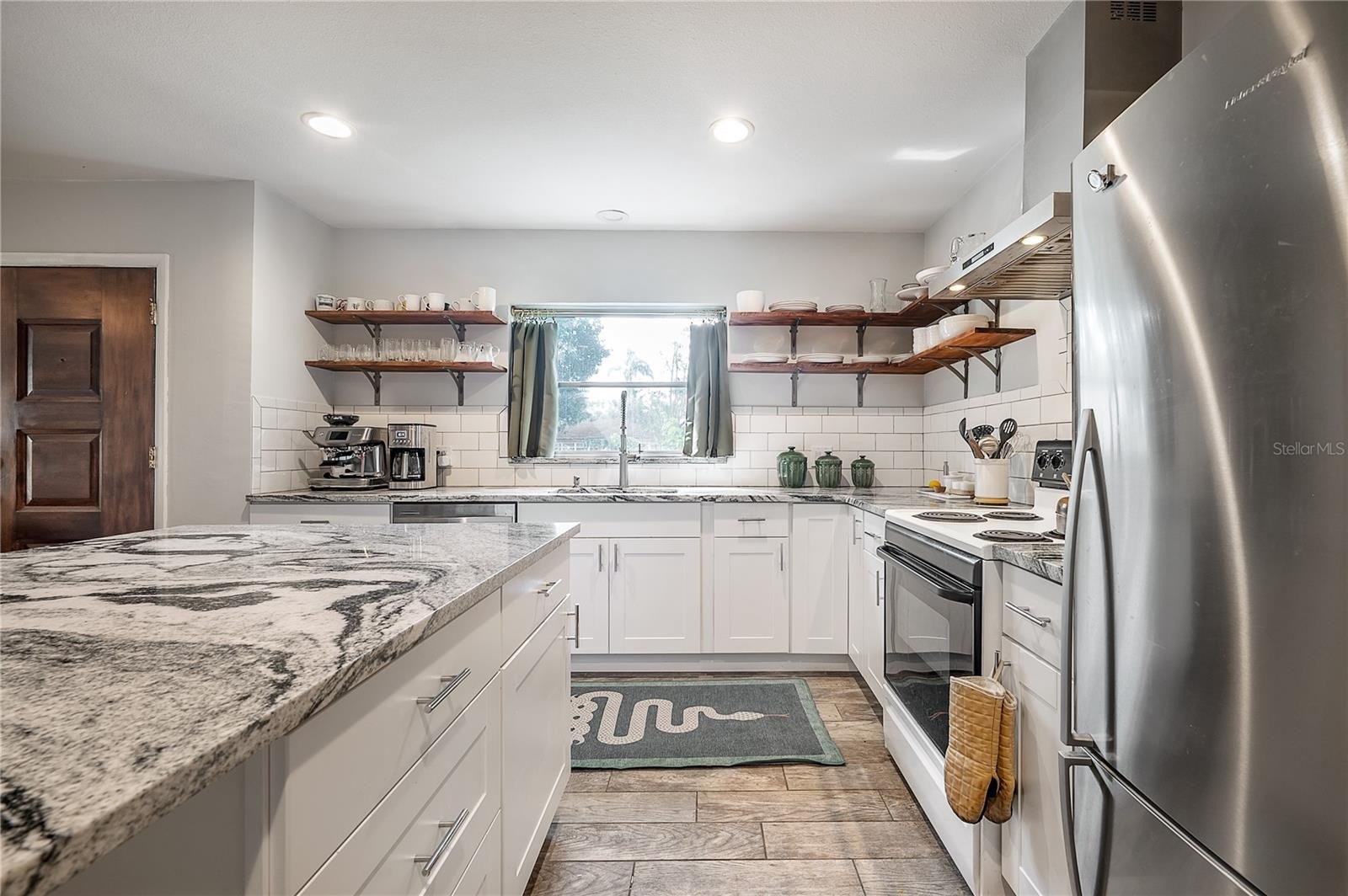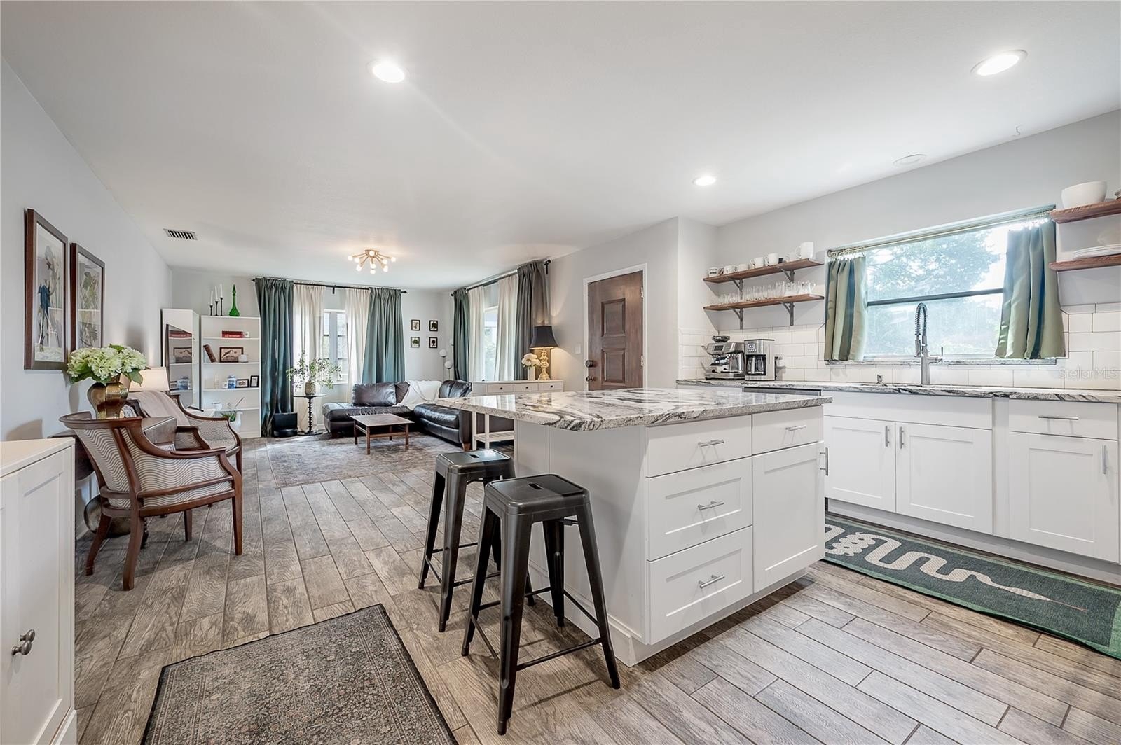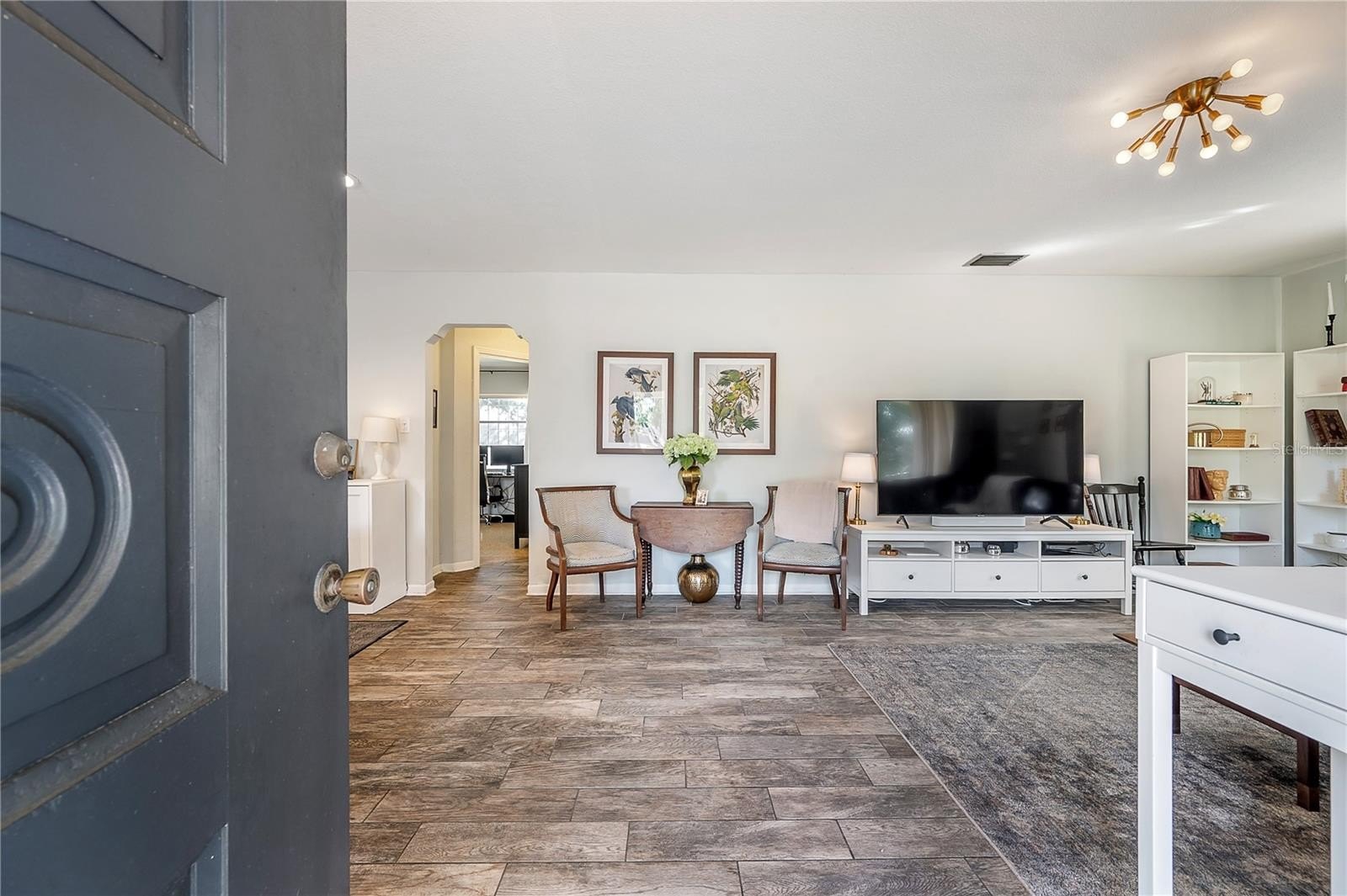 The BEST priced home on the market in Riverside Heights! Welcome to The “Pretty in Pink” Cottage, where 1950s Riverside Heights charm meets 2025 comforts. Too often when someone renovates a historic home, they strip away all the character that made it special when it was first built. Not this one, which seamlessly blends the old and charming with the new and shiny. Built in 1957, this block-constructed Riverside Heights cottage has been thoughtfully updated to meet today’s lifestyle while preserving the timeless charm that makes mid-century homes so beloved. From the moment you arrive, you’ll fall for its mosaic terrazzo-tiled front porch and the brick-lined streets that set the scene for a true Heights classic. Once inside, you’ll find treasures from 1957 still beautifully intact—like the adorable telephone nook (remember when there was just one landline for the whole family to share?), watermelon terrazzo flooring in the bedrooms, and the “Pretty in Pink” guest bathroom with original vintage tile that would be a crime to replace. The living room is bright, cozy, and inviting, anchored by a charming picture window that allows soft natural light to flood the space—one of those simple, beautiful features that make these mid-century homes so special. While many 1950s cottages weren’t built with en suite bathrooms, this one has been thoughtfully reimagined to include a cozy primary suite with its own private bathroom with a walk-in shower and a spacious reach-in closet complemented by original built-in shelving and drawers that are as charming as they are functional. The updates continue throughout, with updated interior and exterior paint, new light fixtures throughout the home, and a renovated kitchen featuring white shaker cabinetry, an oversized island that doubles as a dining table, stone countertops, wood floating shelves, a stainless steel vent hood and dishwasher, undermount sink, brushed nickel hardware, stainless steel French door refrigerator, and a large-format subway tile backsplash. The kitchen tastefully blends timeless trends of yesteryear with tasteful design styles of today. The main living areas flow effortlessly with wood tile flooring, creating a feeling of warmth and cohesion. Set on a spacious 7,800 sqft lot, the backyard offers endless potential—with a screened lanai, garden beds, fire pit, and plenty of room to add a pool or design your dream outdoor retreat. It’s also fully fenced with white vinyl fencing, providing both privacy and curb appeal. A rare one-car garage plus carport adds extra convenience, storage, and laundry.